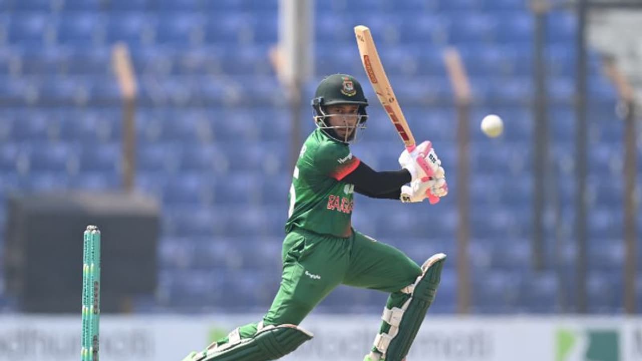ഓപ്പണറും നായകനുമായ തമീം ഇക്ബാലിനെ വ്യക്തിഗത സ്കോര് 23ല്ക്കേ നഷ്ടമായെങ്കിലും രണ്ടാം വിക്കറ്റില് 101 റണ്സിന്റെ കൂട്ടുകെട്ടുമായി ലിറ്റണ് ദാസും നജ്മുല് ഹൊസൈന് ഷാന്റോയും ബംഗ്ലാദേശിന് അടിത്തറയിട്ടു. ലിറ്റണ് 71 പന്തില് മൂന്ന് വീതം സിക്സും ഫോറുമായി 70 ഉം ഷാന്റോ 77 പന്തില് മൂന്ന് സിക്സും രണ്ട് ഫോറുമായി 73 ഉം റണ്സ് അടിച്ചെടുത്തു. ഇരുവരും പുറത്തായ ശേഷം ക്രീസിലെത്തിയ ഷാക്കിബ് അല് ഹസന് ഫോം ആവര്ത്തിക്കാനായില്ല. 19 പന്തില് 17 റണ്സേ ഷാക്കിബ് നേടിയുള്ളൂ. ഷാന്റോ മടങ്ങുമ്പോള് ബംഗ്ലാ സ്കോര് 33.2 ഓവറില് 190ല് എത്തിയിരുന്നു.