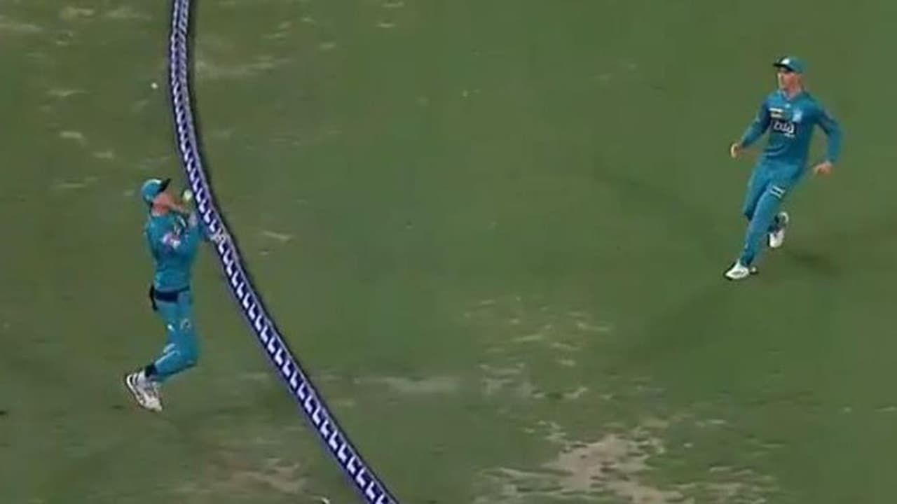 ലോംഗ് ഓണ് ബൗണ്ടറിയിലേക്ക് വെയ്ഡ് ഉയര്ത്തി അടിച്ച പന്ത് റെന്ഷാ കൈയിലൊതുക്കിയെങ്കിലും നിയന്ത്രണം നഷ്ടമായപ്പോള് പന്ത് വായുവിലേക്ക് എറിഞ്ഞ് റെന്ഷാ ബൗണ്ടറി ലൈനിന് പുറത്ത് പോയി. വായുവില് ഉയര്ന്ന പന്ത് ബൗണ്ടറി ലൈനിന് പുറത്ത് വീഴാനൊരുങ്ങിയപ്പോള് വായുവില് ഉയര്ന്ന് കൈകൊണ്ട് ബൗണ്ടറി ലൈനിന് അകത്തുള്ള ടോം ബാന്റണ് തട്ടിക്കൊടുത്തു.