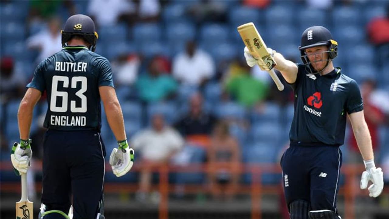 ട്വന്റി20 ശൈലിയിലാണ് ബട്ലര് ബാറ്റ് വീശിയത്. 12 സിക്സും 13 ഫോറും അടങ്ങുന്നതാണ് ബട്ലറുടെ ഇന്നിങ്സ്. മോര്ഗന് 88 പന്തുകള് നേരിട്ടു. ആറ് സിക്സും എട്ട് ഫോറും ബട്ലറുടെ ഇന്നിങ്സിലുണ്ടായിരുന്നു. ജോ റൂട്ട് (5), ബെന് സ്റ്റോക്സ് (11) എന്നിവരാണ് പുറത്തായ മറ്റുതാരങ്ങള്. മൊയീന് അലി (0) പുറത്താവാതെ നിന്നു. വിന്ഡീസിന് വേണ്ടി ഒഷാനെ തോമസ് രണ്ട് വിക്കറ്റെടുത്തു. ഏഴ് ഓവര് മാത്രമെറിഞ്ഞ ജേസണ് ഹോള്ഡര് 88 റണ്സ് വിട്ടുനല്കി.