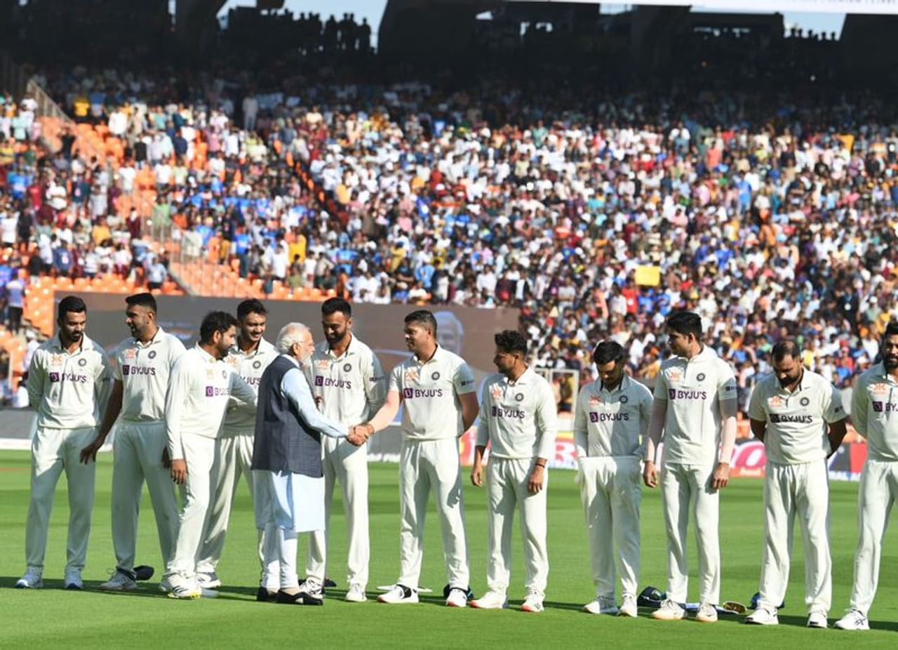 ടോസിന് മുന്നോടിയായി ഇന്ത്യന് ക്യാപ്റ്റന് രോഹിത് ശര്മക്ക് പ്രധാനമന്ത്രി നരേന്ദ്ര മോദിയും ഓസ്ട്രേലിയന് നായകന് സ്റ്റീവ് സ്മിത്തിന് ഓസീസ് പ്രധാനമന്ത്രി ആന്റണി ആല്ബനീസും പുതിയ ടെസ്റ്റ് ക്യാപ് സമ്മാനിച്ചു. ഇതിനുശേഷം തുറന്ന വാഹനത്തില് സ്റ്റേഡിയത്തെ വലം വെച്ച ഇരുവരും കാണികളെ അഭിവാദ്യം ചെയ്തു.