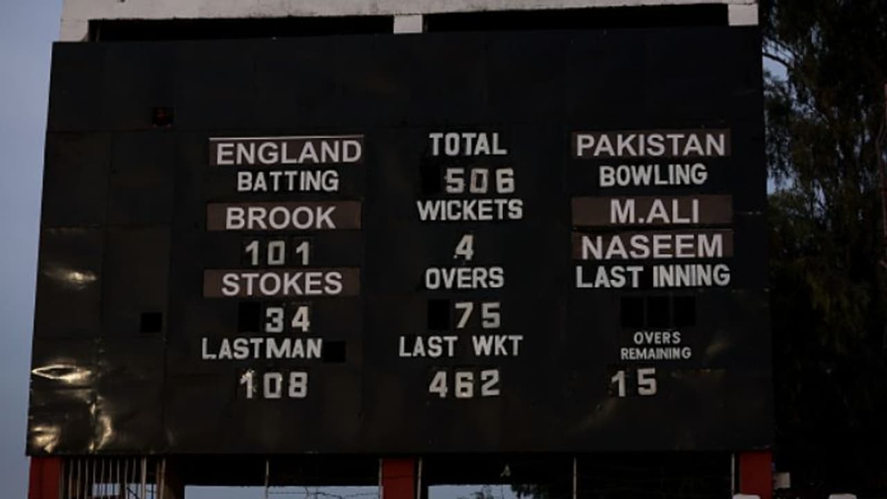 റാവല്പിണ്ടി ടെസ്റ്റിന്റെ ആദ്യ ദിനം വെറും 75 ഓവറുകളെ എറിഞ്ഞുള്ളൂ. എന്നാല് ടെസ്റ്റ് ക്രിക്കറ്റിന്റെ ചരിത്രത്തില് ആദ്യ ദിനം ഏതൊരു ടീമിന്റേയും ഉയര്ന്ന സ്കോറെന്ന(506-4) റെക്കോര്ഡ് ഇംഗ്ലണ്ട് താരങ്ങള് അടിച്ചെടുത്തു. 90 ഓവറുകള് ഇന്ന് എറിഞ്ഞിരുന്നെങ്കില് എന്താകുമായിരുന്നു അവസ്ഥ എന്ന് പ്രത്യേകം പറയേണ്ടല്ലോ. ഇംഗ്ലണ്ടിനായി ഓപ്പണര്മാരായ സാക്ക് ക്രൗലി(111 പന്തില് 122), ബെന് ഡക്കറ്റ്(110 പന്തില് 107), ഒലീ പോപ്(104 പന്തില് 108). ഹാരി ബ്രൂക്ക്(81 പന്തില് 107*) എന്നിവര് സെഞ്ചുറി നേടി. ജോ റൂട്ട് 31 പന്തില് 23 റണ്സെടുത്ത് പുറത്തായപ്പോള് ടി20 ശൈലിയില് ബാറ്റ് വീശുന്ന നായകന് ബെന് സ്റ്റോക്സാണ്(15 പന്തില് 34*) ഒന്നാം ദിനം സ്റ്റംപെടുക്കുമ്പോള് ബ്രൂക്കിനൊപ്പം ക്രീസില്.