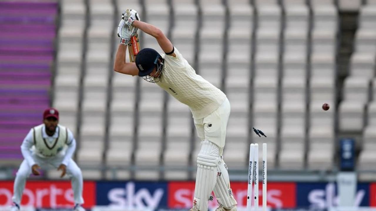മത്സരത്തിലെ രണ്ടാം ഓവറില് തന്നെ ഇംഗ്ലണ്ടിന് ഓപ്പണര് ഡോം സിബ്ലിയുടെ വിക്കറ്റ് നഷ്ടമായി. അക്കൗണ്ട് തുറക്കും മുമ്പെ ഷാനോണ് ഗബ്രിയേലാണ് സിബ്ലിയുടെ വിക്കറ്റ് തെറിപ്പിച്ചത്. ആദ്യ ദിനം മഴമൂലം കളി നിര്ത്തുമ്പോള് ഇംഗ്ലണ്ട് ഒരു വിക്കറ്റ് നഷ്ടത്തില് 35 റണ്സെന്ന നിലയിലാണ്. 20 റണ്ണോടെ റോറി ബേണ്സും 14 റണ്സുമായി ജോ ഡെന്ലിയുമാണ് ക്രീസില്.