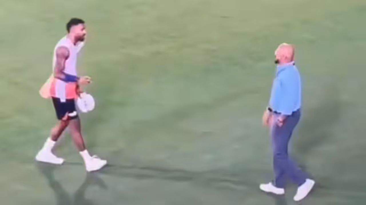 കൈകൾ കൊണ്ട് ആംഗ്യം കാണിച്ചും ശബ്ദമുയർത്തിയും ഹാർദിക് മുരളി കാർത്തിക്കിനോട് സംസാരിക്കുമ്പോൾ, കാർത്തിക് അദ്ദേഹത്തെ ശാന്തനാക്കാൻ ശ്രമിക്കുന്നതായാണ് ദൃശ്യങ്ങളില് നിന്ന് മനസിലാവുന്നത്. കൃത്യമായി എന്ത് കാര്യത്തിനാണ് ഇരുവരും തർക്കിച്ചതെന്ന് വ്യക്തമല്ലെങ്കിലും, മുൻപ് കമന്ററിറിക്കിടെ പാണ്ഡ്യയെക്കുറിച്ച് കാർത്തിക് നടത്തിയ ചില പരാമർശങ്ങളാകാം താരത്തെ പ്രകോപിപ്പിച്ചതെന്ന് ആരാധകർ കരുതുന്നു. ഐപിഎല്ലില് മുംബൈ ഇന്ത്യൻസും ലക്നൗ സൂപ്പര് ജയന്റ്സും തമ്മിലുള്ള മത്സരത്തില് മുംബൈ 12 റണ്സിന് തോറ്റ കളിയില് ഹാര്ദ്ദിക്കിന്റെ തന്ത്രങ്ങളെ കാര്ത്തിക് രൂക്ഷമായി വിമര്ശിച്ചിരുന്നു.