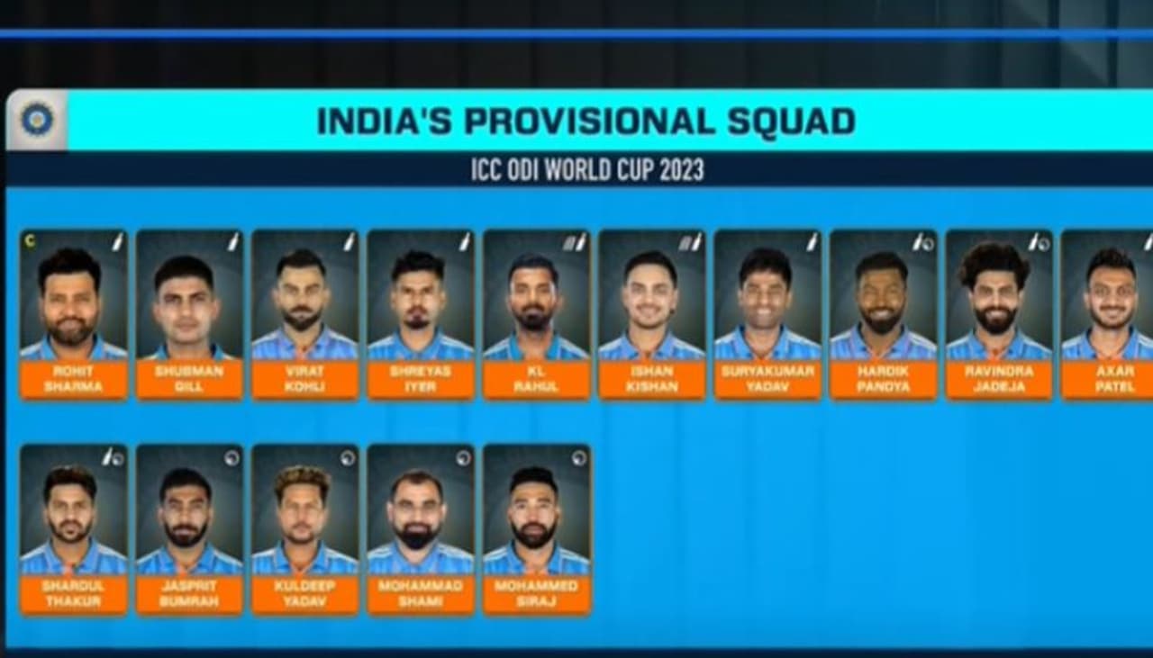 ഏകദിന ലോകകപ്പിനുള്ള ഇന്ത്യന് ടീം: രോഹിത് ശര്മ, ശുഭ്മാന് ഗില്, വിരാട് കോലി, ശ്രേയസ് അയ്യര്, ഇഷാന് കിഷന്, കെ എല് രാഹുല്, ഹാര്ദ്ദിക് പാണ്ഡ്യ, സൂര്യകുമാര് യാദവ്, രവീന്ദ്ര ജഡേജ, അക്സര് പട്ടേല്, ഷാര്ദ്ദുല് താക്കൂര്, ജസ്പ്രീത് ബുമ്ര, മുഹമ്മദ് ഷമി, മുഹമ്മദ് സിറാജ്, കുല്ദീപ് യാദവ്.