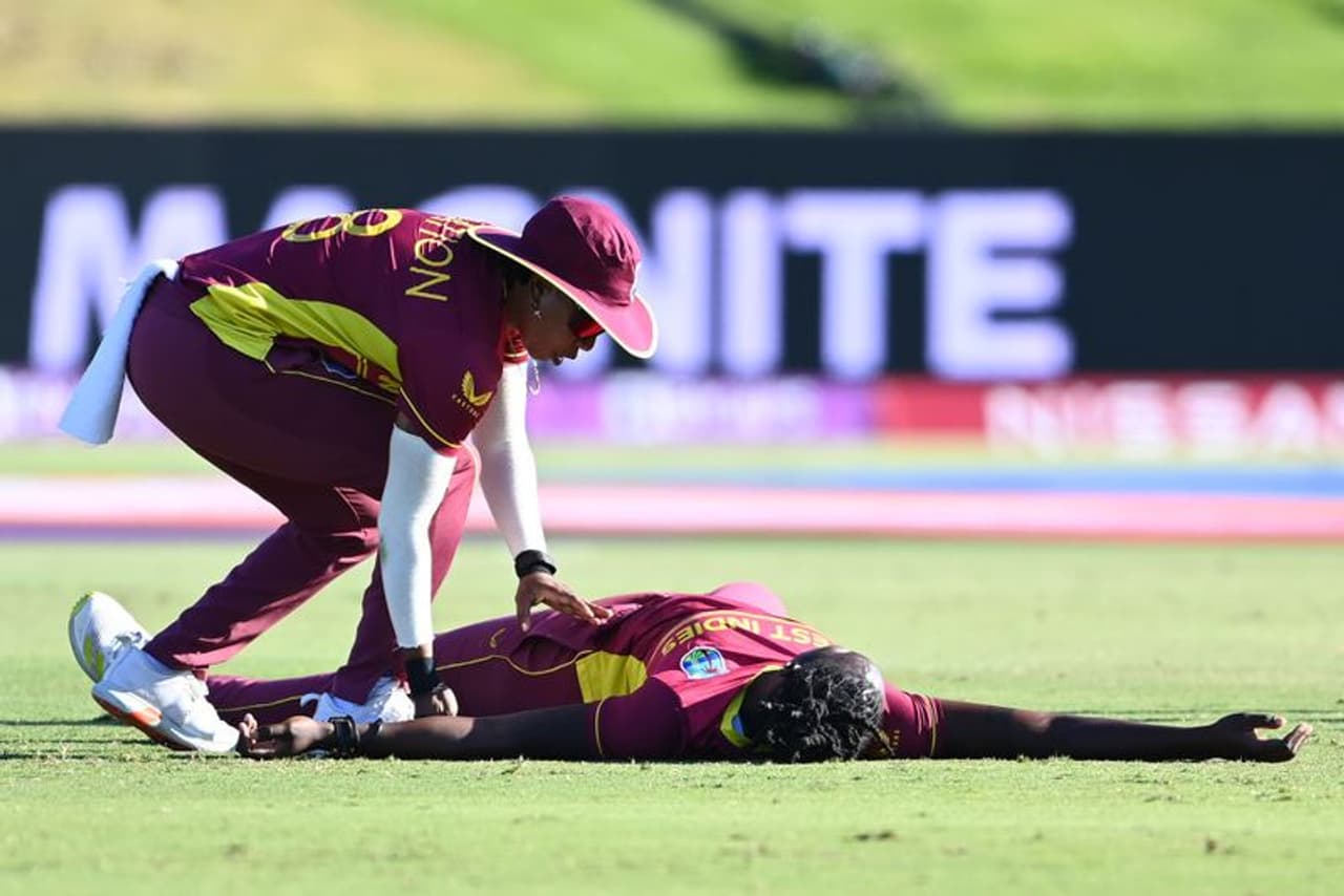ക്രൈസ്റ്റ്ചര്ച്ച്: വനിതാ ഏകദിന ലോകകപ്പില്(ICC Women's World Cup) ബംഗ്ലാദേശിനെതിരായ മത്സരത്തിനിടെ വെസ്റ്റ് ഇന്ഡീസിന്റെ പേസറായ ഷാമിലിയ കോണല്(Shamilia Connell ) ഗ്രൗണ്ടില് കുഴഞ്ഞുവീണു. ബംഗ്ലാദേശ് ഇന്നിംഗ്സിന്റെ 47-ാം ഓവറില് ഫീല്ഡ് ചെയ്യുന്നതിനിടെയായിരുന്നു 29കാരിയായ കോണല് ഗ്രൗണ്ടില് കുഴഞ്ഞു വീണത്. സഹതാരങ്ങളും മെഡിക്കല് ടീമും ഉടന് സമീപത്ത് പാഞ്ഞെത്തി. മെഡിക്കല് സംഘം കോണലിന് പ്രാഥമിക ചികിത്സ നല്കിയശേഷം ആംബുലന്സില് ആശുപത്രിയിലേക്ക് മാറ്റി.