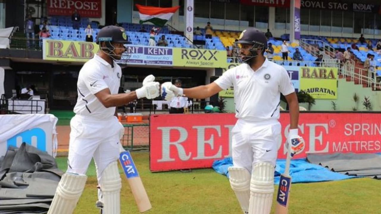 വിശാഖപട്ടണത്ത് രോഹിത്തും മായങ്കും തകര്ത്തടിച്ചപ്പോള് ഓപ്പണിംഗ് വിക്കറ്റില് 317 റണ്സ് പിറന്നു. ടെസ്റ്റില് ആദ്യമായി ഓപ്പണറായി ഇറങ്ങിയ രോഹിത് 244 പന്തില് നിന്ന് 23 ഫോറുകളും ആറ് സിക്സുകളും സഹിതം 176 റണ്സ് നേടി. ഇതിനിടെ ടെസ്റ്റ് കരിയറിലെ തന്റെ ആദ്യ ശതകം സ്വന്തമാക്കി മായങ്ക് അഗര്വാള്. 204 പന്തില് നിന്നാണ് മായങ്കിന്റെ സെഞ്ചുറി.