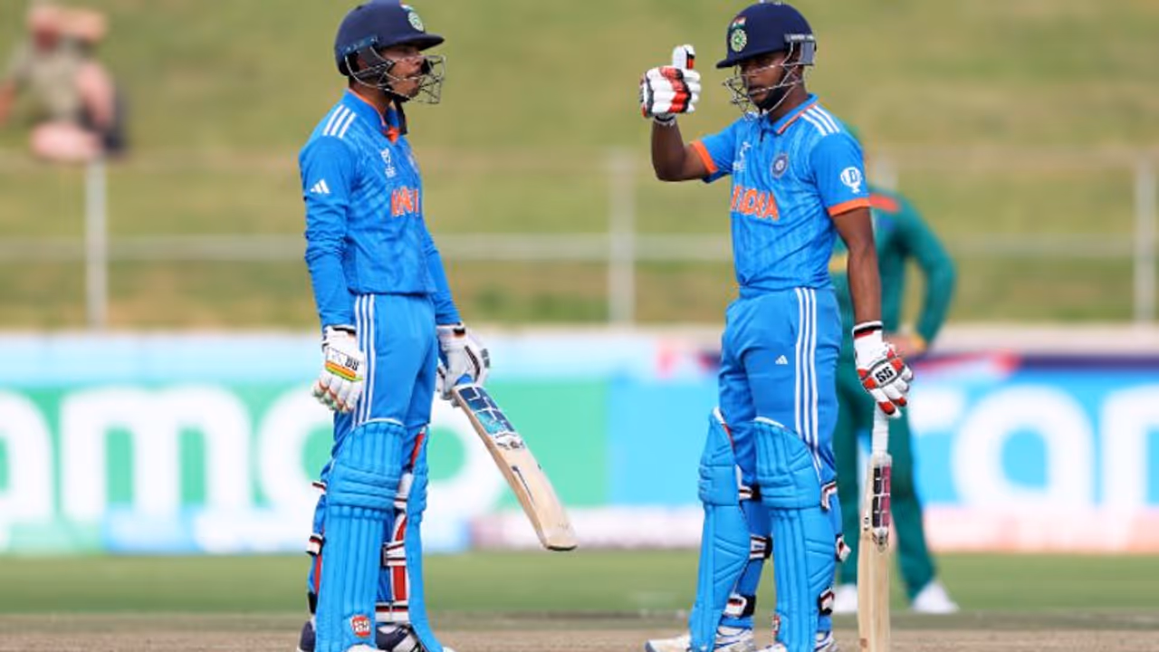 ബെനോനി, വില്ലോമൂര് പാര്ക്കില് നടന്ന മത്സരത്തില് ഒരു ഘട്ടത്തില് തോല്വി മുന്നില് കണ്ടിരുന്നു ഇന്ത്യ. നാലിന് 32 എന്ന പരിതാപകരമായ നിലയിലായിരുന്നു ടീം. മത്സരത്തിലെ ആദ്യ പന്തില് തന്നെ ഇന്ത്യക്ക് ആദ്യ വിക്കറ്റ് നഷ്ടമായി. ക്വെന എംഫാക്കുടെ പന്തില് ആദര്ഷ് സിംഗ് മടങ്ങി. വിക്കറ്റ് കീപ്പര് പിടോറ്യൂസിനായിരുന്നു ക്യാച്ച്. നാലാം ഓവറില് ഇന്ത്യയുടെ രണ്ടാം വിക്കറ്റും നഷ്ടമായി. ടൂര്ണമെന്റില് മികച്ച ഫോമില് കളിക്കുന്ന മുഷീര് ഖാന് (4) സ്ലിപ്പില് ക്യാച്ച് നല്കി മടങ്ങി. ലസ്സിനായിരുന്നു വിക്കറ്റ്. അര്ഷിന് കുല്ക്കര്ണിയുടേയും (12) അവസ്ഥ ഇതുതന്നെയായിരുന്നു. പ്രിയാന്ഷു മോളിയയാവട്ടെ (5) വിക്കറ്റ് കീപ്പര്ക്കാണ് ക്യാച്ച് നല്കിയത്.