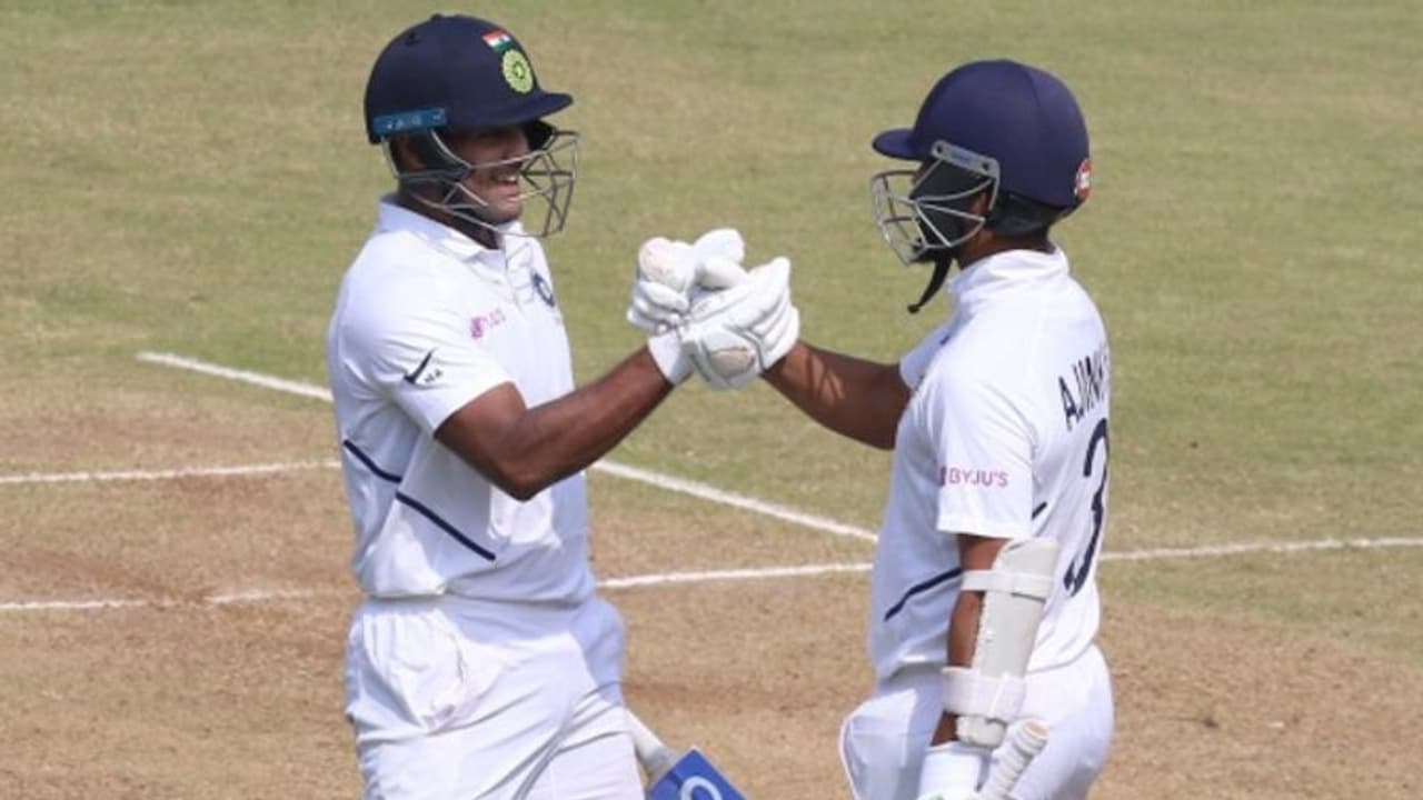 രണ്ടാംദിനം ഇന്ത്യക്ക് ചേതേശ്വര് പൂജാര (54), വിരാട് കോലി (0) എന്നിവരുടെ വിക്കറ്റുകളാണ് നഷ്ടമായത്. രോഹിത് ശര്മ (6) ആദ്യദിനം മടങ്ങിയിരുന്നു. 21 ഫോറും മൂന്ന് സിക്സും അടങ്ങുന്നതാണ് മായങ്കിന്റെ ഇന്നിങ്സ്. ദക്ഷിണാഫ്രിക്കയ്ക്കെതിരെ നിര്ത്തിയിടത്ത് നിന്ന് തുടങ്ങുകയായിരുന്നു മായങ്ക്. രഹാനെ ഇതുവരെ എട്ട് ബൗണ്ടറികള് സ്വന്തമാക്കി. നേരത്തെ, പൂജാരയും കോലിയും അബു ജായേദിന്റെ പന്തില് പുറത്താവുകയായിരുന്നു. സെയ്ഫ് ഹസ്സന് ക്യാച്ച് നല്കിയാണ് പൂജാര മടങ്ങിയത്. കോലിക്കാവട്ടെ രണ്ട് പന്ത് മാത്രമായിരുന്നു ആയുസ്. ജായേദിന്റെ പന്തില് വിക്കറ്റിന് മുന്നില് കുടുങ്ങി. രോഹിത് ശര്മയുടെ വിക്കറ്റും ജായേദാണ് നേടിയിരുന്നത്.