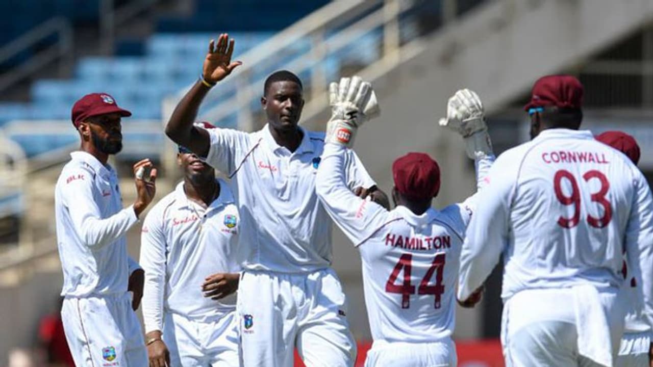 വിന്ഡീസ്: ക്രയ്ഗ് ബ്രാത്വെയ്റ്റ്, ജോണ് ക്യംാപെല്, ഷമര് ബ്രൂക്സ്, ഡാരന് ബ്രാവോ, ഷിംറോണ് ഹെറ്റ്്മയേര്, ജഹ്മര് ഹാമില്ട്ടണ് (വിക്കറ്റ് കീപ്പര്), റകീം കോണ്വാള്, റോസ്റ്റണ് ചേസ്, ജേസണ് ഹോള്ഡര്, കെമര് റോച്ച്, ഷാനോന് ഗബ്രിയേല്.