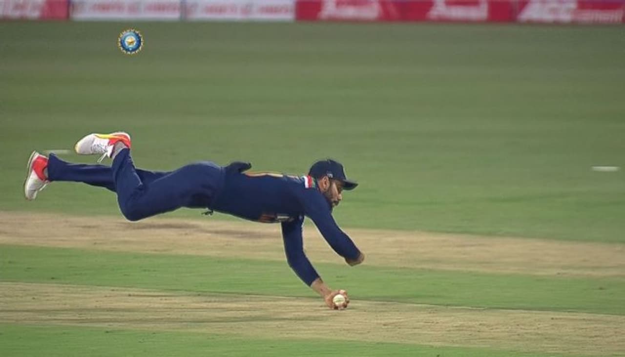 ഷാര്ദുല് താക്കൂര് എറിഞ്ഞ 40-ാം ഓവറിലെ രണ്ടാം പന്തില് ആദില് റഷീദിനെ ലോകോത്തര ക്യാച്ചില് പുറത്താക്കി കോലി മാതൃക കാട്ടി.