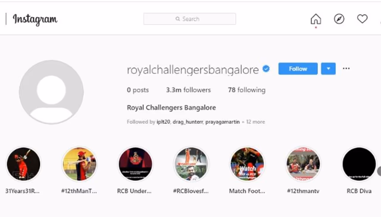 മൂന്ന് മില്യണിലേറ ഫോളോവേഴ്സുള്ള ആര്സിബിയുടെ ഇന്സ്റ്റഗ്രാം അക്കൗണ്ടില് ഒരു ചിത്രംപോലും ഇപ്പോഴില്ല