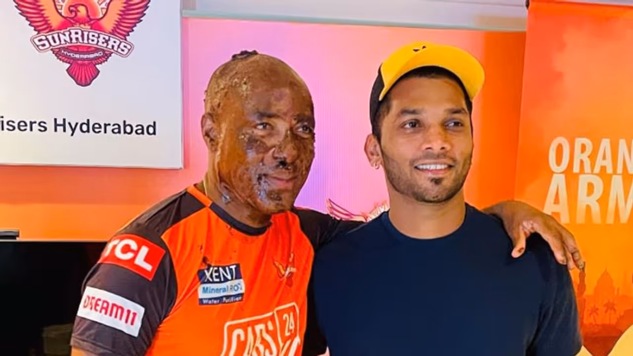 കേക്ക് മുറിക്കലിന് ശേഷം ലാറയുടെ മുഖത്ത് കേക്ക് വാരിത്തേച്ചു സണ്റൈസേഴ്സ് താരങ്ങള്. തുടര്ന്ന് ഇതിഹാസ താരത്തിനൊപ്പം നിന്ന് ചിത്രങ്ങളെടുത്തു എല്ലാവരും. മലയാളി താരവും സണ്റൈസേഴ്സ് ബാറ്ററുമായ വിഷ്ണു വിനോദും ലാറയുടെ പിറന്നാളാഘോഷത്തിലും ഒപ്പം നിന്ന് ചിത്രമെടുക്കാനുമുണ്ടായിരുന്നു.