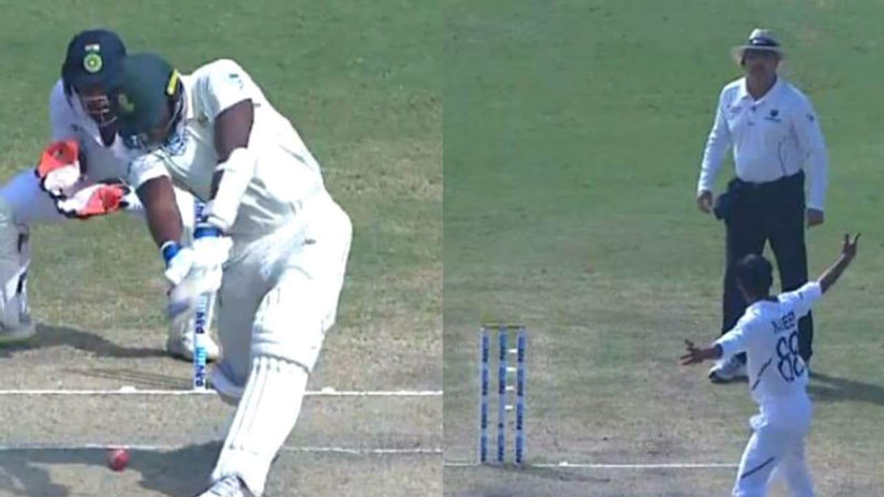 ഡീന് എല്ഗാറിന് പകരം കണ്കഷന് സബസ്റ്റിറ്റ്യൂട്ടായി എത്തിയ തെയൂനിസ് ഡിബ്രുയിന് പുറത്തായപ്പോള് പതിനൊന്നാമനായി ക്രീസിലെത്തിയ എന്ഡിഗി ഷഹബാല് നദീമിന്റെ നേരിട്ട ആദ്യ പന്ത് തന്നെ അതിര്ത്തി കടത്താനാണ് ശ്രമിച്ചത്.