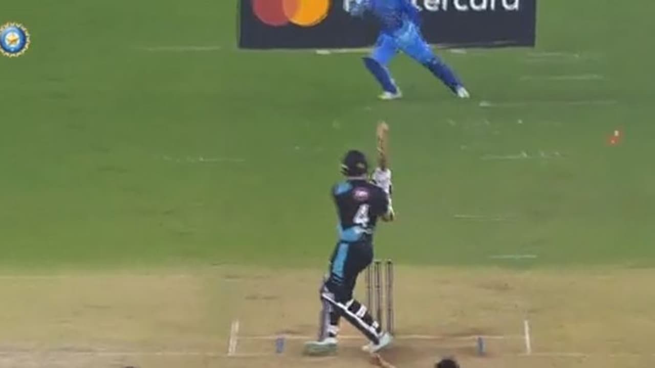 ഉമ്രാന്റെ പന്തിന്റെ വേഗം കൊണ്ടുതന്നെ വിക്കറ്റില് ബെയ്ല്സ് തെറിച്ചു വീണത് വിക്കറ്റ് കീപ്പര് ഇഷാന് കിഷന്റെയും സ്ലിപ്പിലുണ്ടായിരുന്ന സൂര്യകുമാര് യാദവിന്റെയും തലകക്ക് മുകളിലൂടെ പറന്ന് 30 വാര സര്ക്കിളിന് പുറത്തായിരുന്നു. പിന്നാലെ 35 റണ്സെടുത്ത് ന്യൂസിലന്ഡിന്റെ ടോപ് സ്കോററായ ഡാരില് മിച്ചലിനെ കൂടി പുറത്താക്കി ഉമ്രാന് മത്സരത്തില് 2.1 ഓവറില് 9 റണ്സ് മാത്രം വഴങ്ങി രണ്ട് വിക്കറ്റെടുത്ത് തിളങ്ങി.