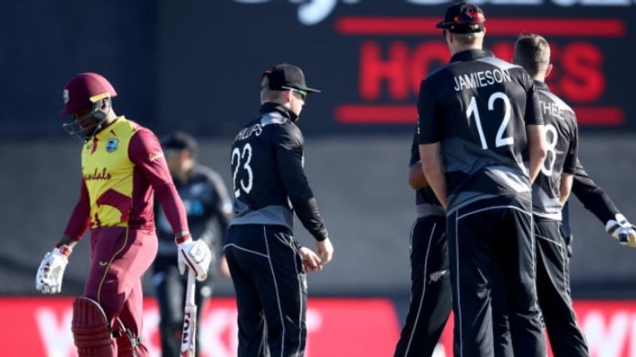 28 റണ്സ് നേടിയ കീറണ് പൊള്ളാര്ഡാണ് വിന്ഡീസിന്റെ ടോപ് സ്കോറര്. കീമോ പോള് (പുറത്താവാതെ 26), ഷിംറോണ് ഹെറ്റ്മയേര് (25), അന്ദ്രേ ഫ്ളച്ചര് (20), കെയ്ല് മയേഴ്സ് (20) എന്നിവരാണ് മറ്റു പ്രധാന സ്കോറര്മാര്. ബ്രന്ഡണ് കിംഗ് (0), നിക്കോളാസ് പുരാന് (8), റോവ്മാന് പവല് (9), ഫാബിയന് അലന് (15), ഷെല്ഡണ് കോട്ട്രല് (1) എന്നിവരാണ് പുറത്തായ മറ്റുതാരങ്ങല്. ഒഷാനെ തോമസ് (0) കീമോ പോളിനൊപ്പം പുറത്താവാതെ നിന്നു. കെയ്ല് ജാമിസണ്, മിച്ചല് സാന്റ്നര് എന്നിവര് രണ്ട് വിക്കറ്റ് വീതം വീഴ്ത്തി. ലോക്കി ഫെര്ഗൂസണ്, ഇഷ് സോധി, ജയിംസ് നീഷാം എന്നിവര്ക്ക് ഓരോ വിക്കറ്റുണ്ട്.