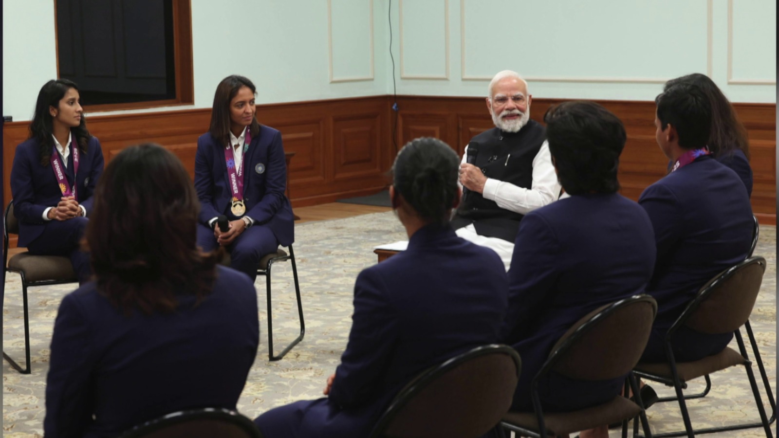 കിരീടം നേടിയ ഇന്ത്യൻ ടീം അംഗങ്ങളെ അഭിനന്ദിച്ചതിനൊപ്പം പ്രധാനമന്ത്രി ടീം അംഗങ്ങളെ മുഴുവന് പ്രചോദിപ്പിച്ചുവെന്ന് വൈസ് ക്യാപ്റ്റൻ സ്മൃതി മന്ദാന പറഞ്ഞു. ഫൈനലില് ജയിച്ചശേഷം എങ്ങനെയാണ് ആ പന്ത് സ്വന്തമാക്കിയതെന്ന് പ്രധാനമന്ത്രി ഹര്മന്പ്രീതിനോട് ചോദിച്ചു. ആ ക്യാച്ച് തനിക്കു നേരെ വന്നത് ഭാഗ്യമായെന്നായിരുന്നു ഹര്മന്റെ മറുപടി. ക്യാച്ചെടുക്കുമ്പോള് നിങ്ങള് പന്താണ് കണ്ടതെങ്കില് അതിനുശേഷം കണ്ടത് കിരീടമാണെന്നായിരുന്നു പ്രധാനമന്ത്രിയുടെ മറുപടി. തന്റെ സഹോദരന് പ്രധാനമന്ത്രിയുടെ വലിയ ആരാധകനാണെന്ന് ഇന്ത്യൻ പേസര് ക്രാന്തി ഗൗഡ് പറഞ്ഞപ്പോള് സഹോദരനെ നേരില്ക്കാണാന് ആഗ്രഹമുണ്ടെന്നും അദ്ദേഹത്തോട് വരാന് പറയൂ എന്നും പ്രധാനമന്ത്രി പറഞ്ഞു. ലോകകപ്പ് നേടിയ ടീമിലെ ടീമംഗങ്ങൾ ഒപ്പിട്ട ജേഴ്സി പ്രധാനമന്ത്രിക്ക് സമ്മാനിച്ചു.