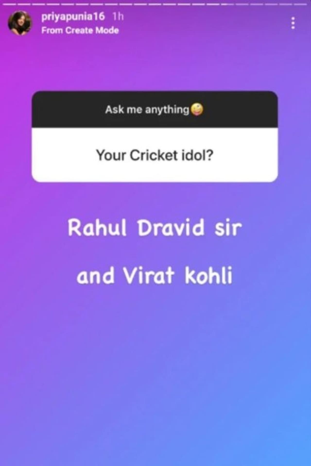 നിരവധി പേരാണ് താരവുമായി സംവദിച്ചത്. സംസാരത്തിനിടെ ക്രിക്കറ്റില് തന്റെ മാതൃകയാരെന്ന് വ്യക്തമാക്കിയിരിക്കുകയാണ് പ്രിയ.