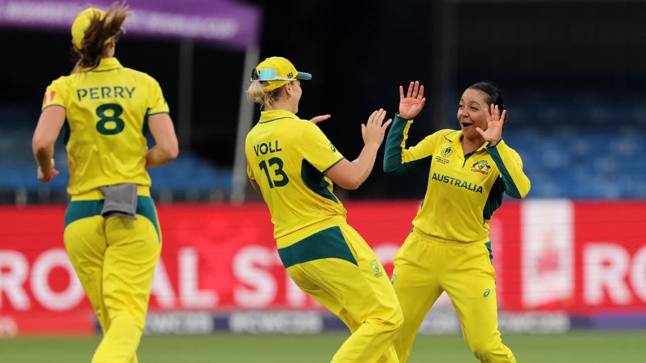 വനിതാ ഏകദിന ലോകകപ്പിൽ ഓസ്ട്രേലിയക്കെതിരെ ദക്ഷിണാഫ്രിക്ക 97 റൺസിന് പുറത്തായി. ഏഴ് വിക്കറ്റ് വീഴ്ത്തിയ ഓസീസ് സ്പിന്നർ അലാന കിംഗാണ് ദക്ഷിണാഫ്രിക്കൻ ബാറ്റിംഗ് നിരയെ തകർത്തത്.