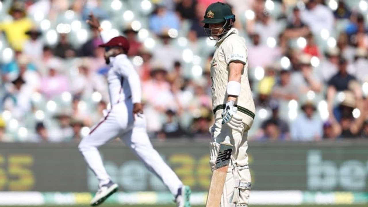ഡേവിഡ് വാര്ണര്ക്ക് പകരം കരിയറില് ആദ്യമായി ഓപ്പണറായി ഇറങ്ങിയ സ്റ്റീവ് സ്മിത്ത് വിന്ഡീസിന്റെ അരങ്ങേറ്റക്കാരന് പേസര് ഷമര് ജോസഫിന്റെ പന്തില് സ്ലിപ്പില് ജസ്റ്റിന് ഗ്രീവ്സിന് ക്യാച്ച് നല്കി പുറത്തായി. 26 പന്തില് രണ്ട് ബൗണ്ടറിയടക്കം 12 റണ്സാണ് സ്മിത്തിന്റെ സംഭാവന.
