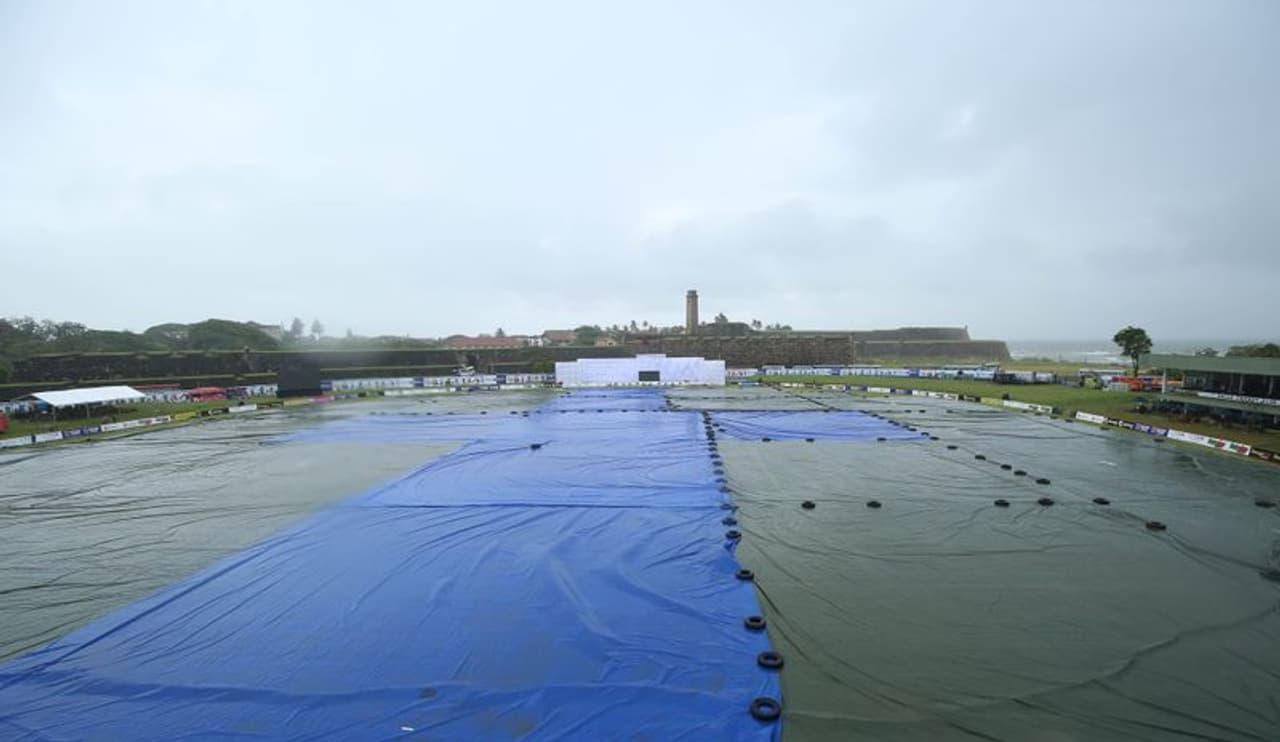 കനത്ത മഴകാരണം ഗോള് ടെസ്റ്റ് രണ്ടാംദിനം ആരംഭിക്കുന്നത് വൈകുകയാണ്. പ്രാദേശിക സമയം രാവിലെ 10 മണിക്കായിരുന്നു മത്സരം തുടങ്ങേണ്ടിയിരുന്നത്. മത്സരം ആരംഭിക്കുന്നതിന് ഒന്നര മണിക്കൂർ മുമ്പ് മുതല് മഴ തകർത്തുപെയ്യുകയായിരുന്നു. ഇതിനൊപ്പം കനത്ത കാറ്റും ആഞ്ഞുവീശി. മൈതാനം പൂർണമായും ഗ്രൗണ്ട് സ്റ്റാഫ് മൂടിയെങ്കിലും ഗാലറിയുടെ മേല്ക്കൂര തകർന്നത് വലിയ ആശങ്കയുണ്ടാക്കി. മൈതാനത്ത് വിരിച്ചിരിക്കുന്ന ടാർപോളീന് ഷീറ്റുകള് കാറ്റില് പറക്കാതിരിക്കാന് ടയറുകള് മുകളില് നിരത്തിയിരിക്കുകയാണ്. മത്സരം പുനരാരംഭിക്കുന്നതിന് മുമ്പ് മേല്ക്കൂര എങ്ങനെ ഉറപ്പിക്കാമെന്ന പ്രയത്നത്തിലാണ് ഒഫീഷ്യലുകള്.