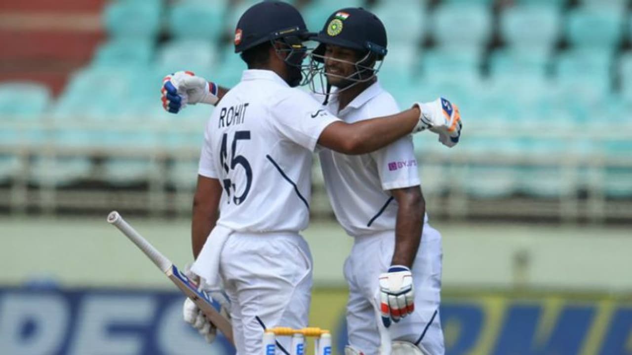 ഇന്ത്യയുടെ ആദ്യദിനം രോഹിത് ശര്മയുടേത് ആയിരുന്നെങ്കില് രണ്ടാം ദിനം മായങ്ക് അഗര്വാളിന്റേത് ആയിരുന്നു. വിക്കറ്റ് നഷ്ടമില്ലാതെ 202 എന്ന നിലയില് രണ്ടാം ദിനം ആരംഭിച്ച ഇന്ത്യ 300 റണ്സാണ് കൂട്ടിച്ചേര്ത്തത്. രോഹിത്തിന് ഇരട്ട സെഞ്ചുറി നഷ്ടമായെങ്കിലും മായങ്ക് അവസരം മുതലെടുത്തു. 23 ഫോറും ആറ് സിക്സും കണ്ടെത്തിയ രോഹിത്തിനെ കേശവ് മഹാരാജിന്റെ പന്തില് ക്വിന്റണ് ഡി കോക്ക് സ്റ്റംപ് ചെയ്ത് പുറത്താക്കി. ഇരുവരും 317 റണ്സാണ് കൂട്ടിച്ചേര്ത്തത്. 23 ഫോറും ആറ് സിക്സും അടങ്ങുന്നതായിരുന്നു മായങ്കിന്റെ ഇന്നിങ്സ്. താരന്റെ ആദ്യ ടെസ്റ്റ് സെഞ്ചുറിയാണിത്.
