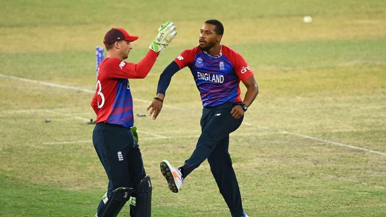 ഇംഗ്ലണ്ടിനായി ക്രിസ് ജോര്ദന് നാലോവറില് 17 റണ്സിന് മൂന്ന് വിക്കറ്റെടുത്തപ്പോള് ക്രിസ് വോക്സ് നാലോവറില് 23 റണ്സിന് രണ്ടും ആദില് റഷീദ് നാലോവറില് 19 റണ്സിനും ലിയാം ലിവിംഗ്സ്റ്റണ് നാലോവറില് 15 റണ്സിനും ഓരോ വിക്കറ്റെടുത്തു. ടൈമല് മില്സ് നാലോവറില് 45 റണ്സ് വിട്ടുകൊടുത്താണ് രണ്ട് വിക്കറ്റ് വീഴ്ത്തിയത്.