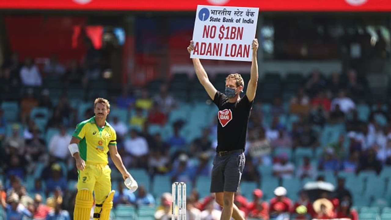ഇന്ത്യ ഓസ്ട്രേലിയ മത്സരത്തിലെ ആറാം ഓവറില് നവദീപ് സൈനി ബോള് ചെയ്യാന് പോകവെയാണ് പിച്ചിലേക്ക് രണ്ടുപേര് ഓടിയെത്തിയതും പ്ലക്കാര്ഡ് പ്രദര്ശിപ്പിച്ചതും. ഇവരെ അധികം വൈകാതെ സുരക്ഷ ജീവിനക്കാര് ഗ്രൌണ്ടിന് പുറത്ത് എത്തിച്ചു. കൊവിഡ് മഹാമാരിക്കാലത്ത് ആരാധകരെ സ്റ്റേഡിയത്തില് പ്രവേശിപ്പിച്ച് നടത്തുന്ന ആദ്യത്തെ അന്താരാഷ്ട്ര ക്രിക്കറ്റ് മത്സരമാണ് സിഡ്നിയിലേത്. 50 ശതമാനം കാണികളെയാണ് ക്രിക്കറ്റ് ഓസ്ട്രേലിയ മത്സരത്തിന് അനുവദിച്ചിരിക്കുന്നത്.