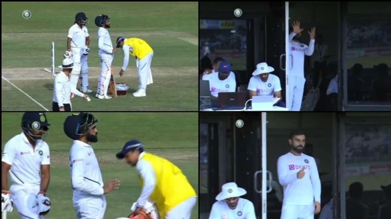 ഇന്ത്യ ആറ് വിക്കറ്റിന് 457 റണ്സ് എന്ന നിലയില് നില്ക്കേ രവീന്ദ്ര ജഡേജയും വൃദ്ധിമാൻ സാഹയുമായിരുന്നു ക്രീസില്. ഓവര് അവസാനിച്ചതോടെ രവീന്ദ്ര ജഡേജ ഡ്രെസിംഗ് റൂമിലുള്ള ക്യാപ്റ്റൻ വിരാട് കോലിയെ നോക്കുന്നു. എന്നാല് എന്താണ് വിരാട് കോലി ആംഗ്യം കാട്ടി പറഞ്ഞതെന്ന് കമന്റേറ്റര്മാര്ക്കുപോലും മനസിലായില്ല. എന്തെന്ന് കണ്ടുപിടിക്കാൻ വെല്ലുവിളിച്ച് ഈ വീഡിയോ ഇന്ത്യന് ക്രിക്കറ്റ് ടീം ഇന്സ്റ്റഗ്രാമില് പോസ്റ്റ് ചെയ്തു. പോസ്റ്റിന് താഴെ പലവിധത്തിലുള്ള കമന്റുകള് പ്രത്യക്ഷപ്പെട്ടു.