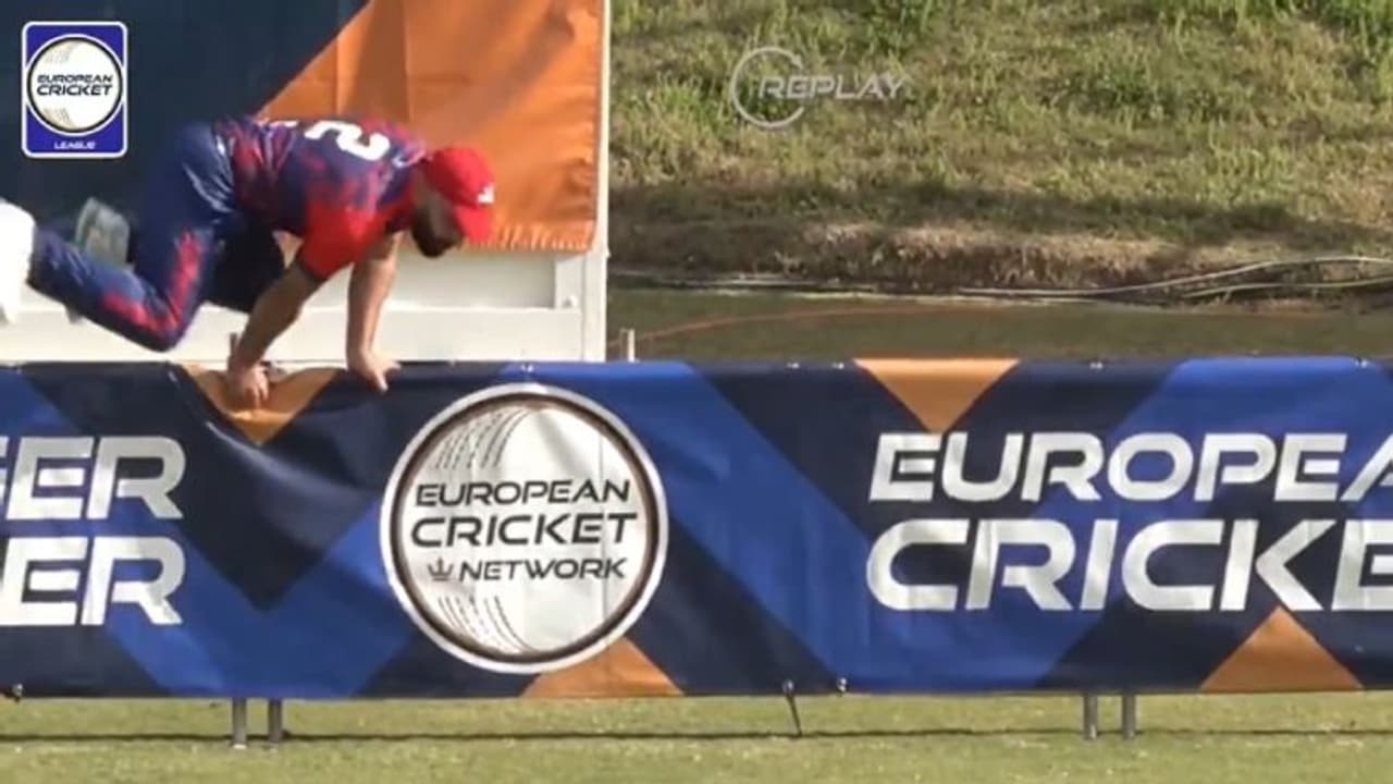 കാര്ട്ടാമ ഓവല്: യൂറോപ്യന് ക്രിക്കറ്റ് ലീഗ് മത്സരത്തിലെ അസാധാരണ ഫീല്ഡിങ് പ്രകടനം കണ്ട് കിളി പോയിരിക്കുകായണ് ആരാധകര്. കഴിഞ്ഞ ദിവസങ്ങളില് സമൂഹമാധ്യമങ്ങളില് വൈറലായ ഒരു ഫീല്ഡിങ് വീഡിയോ കണ്ടാണ് ആരാധകര് അന്തം വിട്ടിരിക്കുന്നത്. യൂറോപ്യന് ക്രിക്കറ്റ് ലീഗിലെ ഗ്രൂപ്പ് എഫ് പോരാട്ടത്തില് ഇന്ഡിപെന്ഡന്റ്സ് സിസിയും ഡൊണൗസ്റ്റാഡും തമ്മിലുള്ള മത്സരത്തിനിടെയായിരുന്നു രസകരമായ സംഭവം.