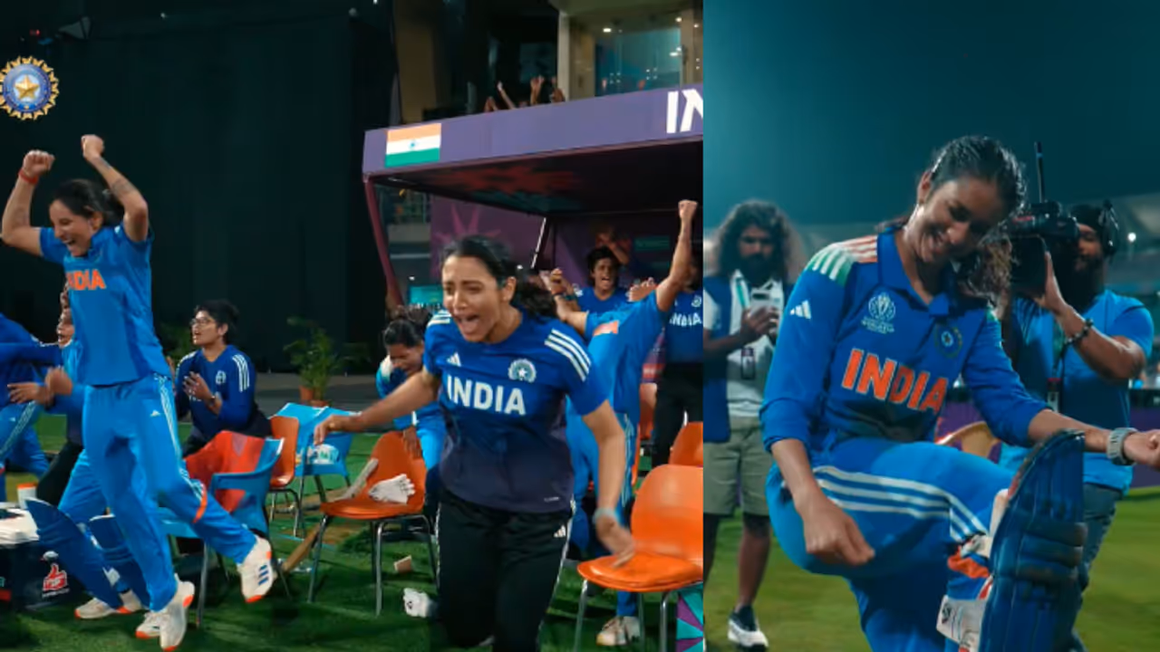 അമന്ജ്യോത് വിജയറൺ കുറിച്ചതിന് പിന്നാലെ ഗ്രൗണ്ടില് മുട്ടുകുത്തി വിങ്ങിപ്പൊട്ടിയ ജെമീമ റോഡ്രിഗസിന് മുകളിൽ ഓടിയെത്തിയ ഇന്ത്യൻ താരങ്ങള് ആവേശക്കൊടുമുടി തീര്ത്തു.