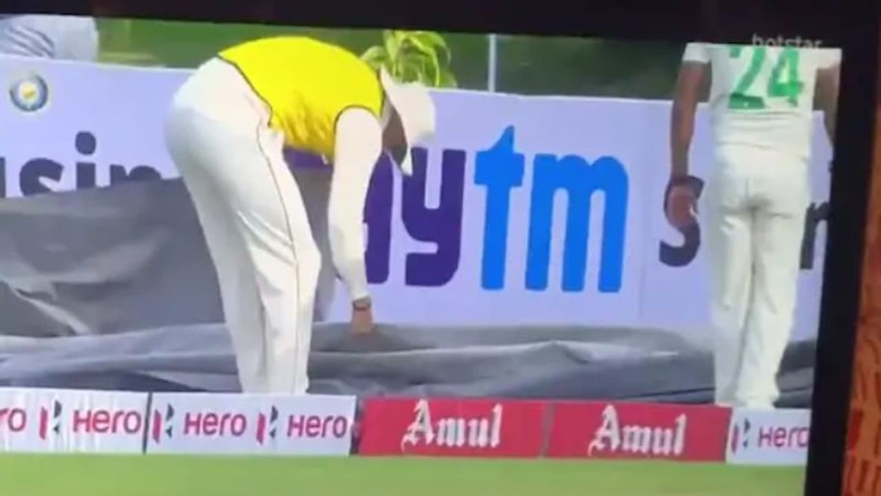 ഇന്ത്യന് ഇന്നിംഗ്സിലെ 129-ാം ഓവറിലായിരുന്നു രസകരമായ സംഭവം. ദക്ഷിണാഫ്രിക്കന് വിക്കറ്റ് കീപ്പര് ക്വിന്റണ് ഡികോക്ക് പന്ത് കൈക്കാലാക്കുന്നതില് പരാജയപ്പെട്ടപ്പോള് ബോള് ബൗണ്ടറികടന്നു. ഇതുവരെ കാര്യങ്ങളെല്ലാം സ്വാഭാവികം മാത്രം. എന്നാല് പിന്നീട് നടന്ന സംംഭവങ്ങളാണ് കൂട്ടച്ചിരി സൃഷ്ടിച്ചത്.