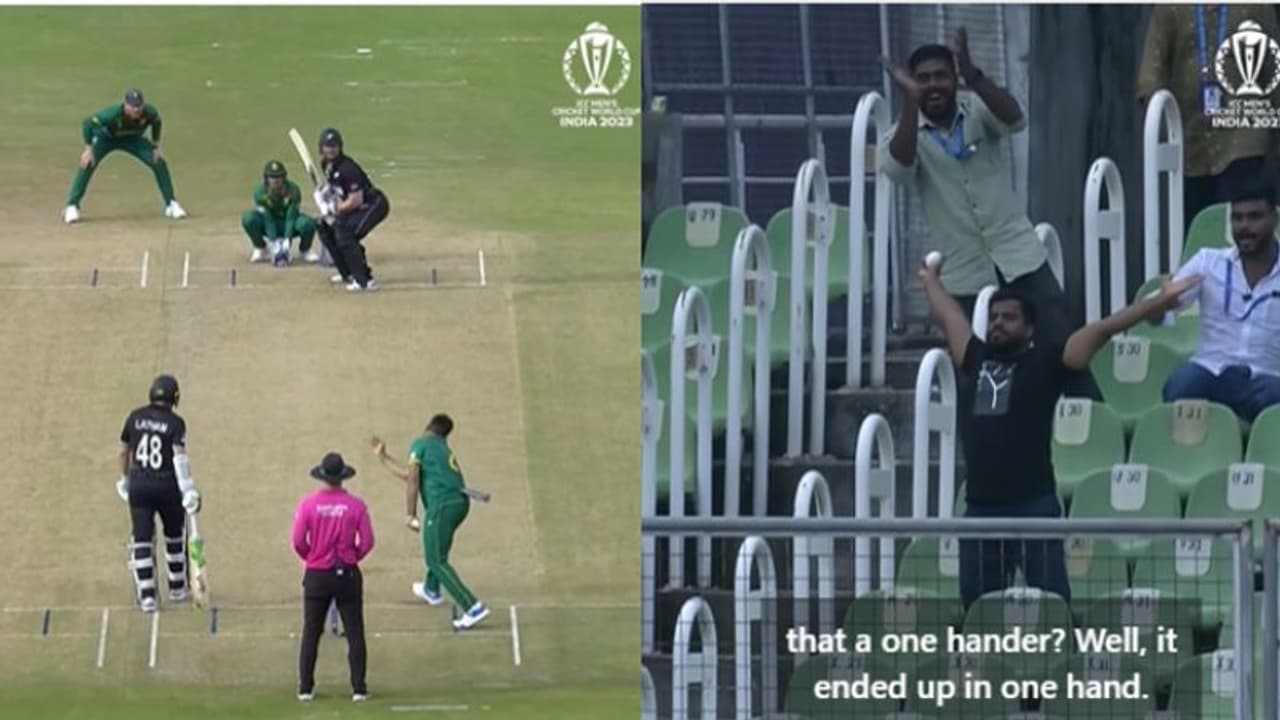 ന്യൂസിലന്ഡ് ഇന്നിംഗ്സിലെ 35-ാം ഓവറിലായിരുന്നു കിവീസ് വെടിക്കെട്ട് വീരന് ഗ്ലെന് ഫിലിപ്സിന്റെ തകര്പ്പന് സിക്സര്. ദക്ഷിണാഫ്രിക്കന് സ്പിന്നര് തബ്രൈസ് ഷംസിയുടെ ഓഫ്സ്റ്റംപിന് പുറത്ത് പിച്ച് ചെയ്ത പന്ത് ഗാലറിയിലേക്ക് കോരിയിടുകയായിരുന്നു ഗ്ലെന് ഫിലിപ്സ്. എന്നാല് തലസ്ഥാനത്തെ കാണികളിലൊരാള് പന്ത് അനായാസം പിടികൂടിയതോടെ കമന്ററ്റര്മാര്ക്ക് ത്രില്ലടക്കാനായില്ല. ഒറ്റകൈയന് ക്യാച്ച് എന്ന വിശേഷണത്തോടെ കമന്റേറ്റര്മാര് കമന്ററി ബോക്സിനെ തീപിടിപ്പിച്ചു. സന്നാഹ മത്സരങ്ങളിലെ മറ്റൊരു ക്രൗഡ് ക്യാച്ച് എന്ന് കമന്റേറ്റര്മാര് ഇതിനെ വിശേഷിപ്പിക്കുന്നത് കാണാമായിരുന്നു. ഐസിസി ഈ ക്യാച്ചിന്റെ വീഡിയോ സാമൂഹ്യമാധ്യമങ്ങളില് പങ്കുവെച്ചതോടെ മലയാളി ആരാധകന്റെ ക്യാച്ച് വലിയ ശ്രദ്ധയാകര്ഷിച്ചു. ഇതിനകം 13 ലക്ഷത്തിലധികം പേരാണ് ഈ വീഡിയോ ഫേസ്ബുക്കില് കണ്ടത്.