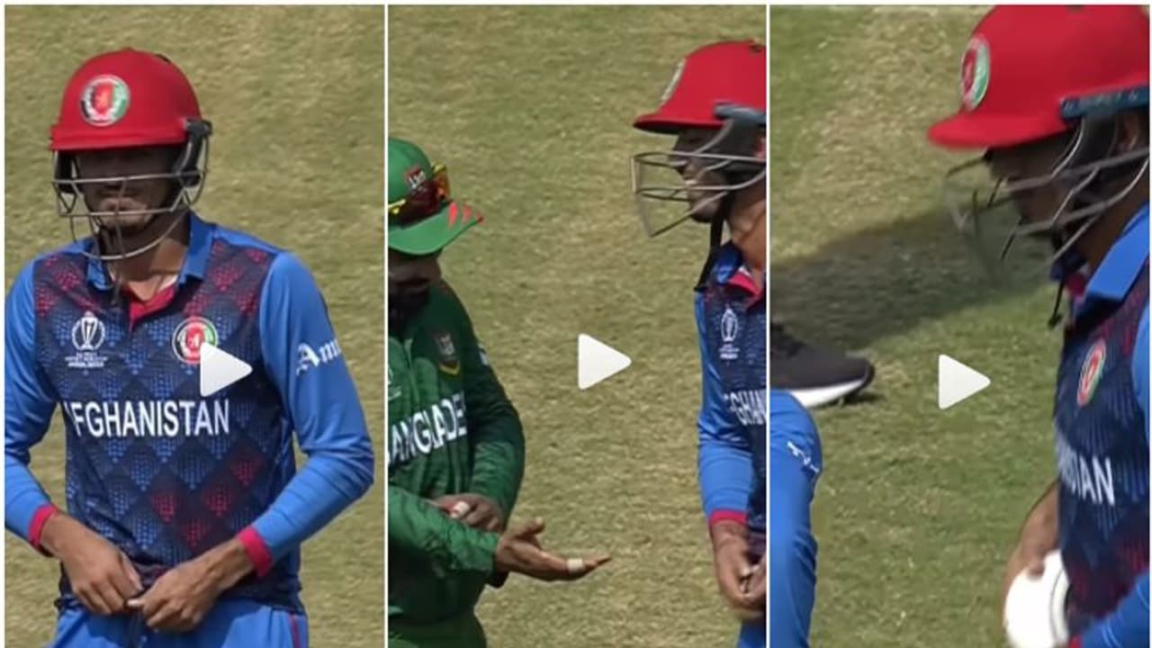 അഫ്ഗാന്റെ ബാറ്റിംഗ് ഇന്നിംഗ്സില് ഒരു രസകരമായ സംഭവം നടന്നു. മുജീബ് ഉര് റഹ്മാന് ക്രീസിലെത്തിയപ്പോഴായിരുന്നു അത്. ഗ്രൗണ്ടിലെത്തിയത് മുതല് അദ്ദേഹം എന്തോ മറന്നത് പോലെയായിരുന്നു.