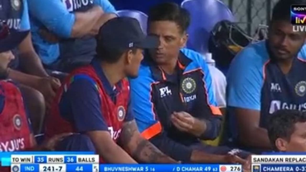 ജയിച്ചുകയറുമ്പോള് ചാഹറിനും ഭുവിക്കും മാത്രമല്ല കയ്യടി. പരിശീലകന് രാഹുല് ദ്രാവിഡിനും ഇന്ത്യന് ക്രിക്കറ്റ് ടീം ആരാധകര് നല്ല വാക്കുകള് കൊണ്ട് മൂടുകയാണ്. ഒരു വീഡിയോയും കൂടെ പങ്കുവെക്കുന്നുണ്ട്. ടീം കടുത്ത സമ്മര്ദ്ദിലൂടെ കടന്നുപോകുന്ന സമയം ദീപകിന് കൈമാറാനുള്ള സന്ദേശം രാഹുല് ചാഹറിന് പറഞ്ഞുകൊടുക്കുന്നുണ്ട്. 12-ാമനായ രാഹുലാണ് ഈ സന്ദേശം ദീപകില് എത്തിക്കുന്നത്. ഡ്രസിംഗ് റൂമില് ഇരിക്കുകയായിരുന്ന ദ്രാവിഡ് ഡഗ്ഔട്ടില് ഇരിക്കുന്ന താരങ്ങള്ക്കിടയിലേക്ക് ഇറങ്ങി രാഹുലിനോട് സംസാരിക്കുന്ന വീഡിയ വൈറലായി. മലയാളി താരം സഞ്ജു സാംസണ് അടുത്തിരിക്കുന്നുണ്ട്. വിഡീയോ കാണാം.