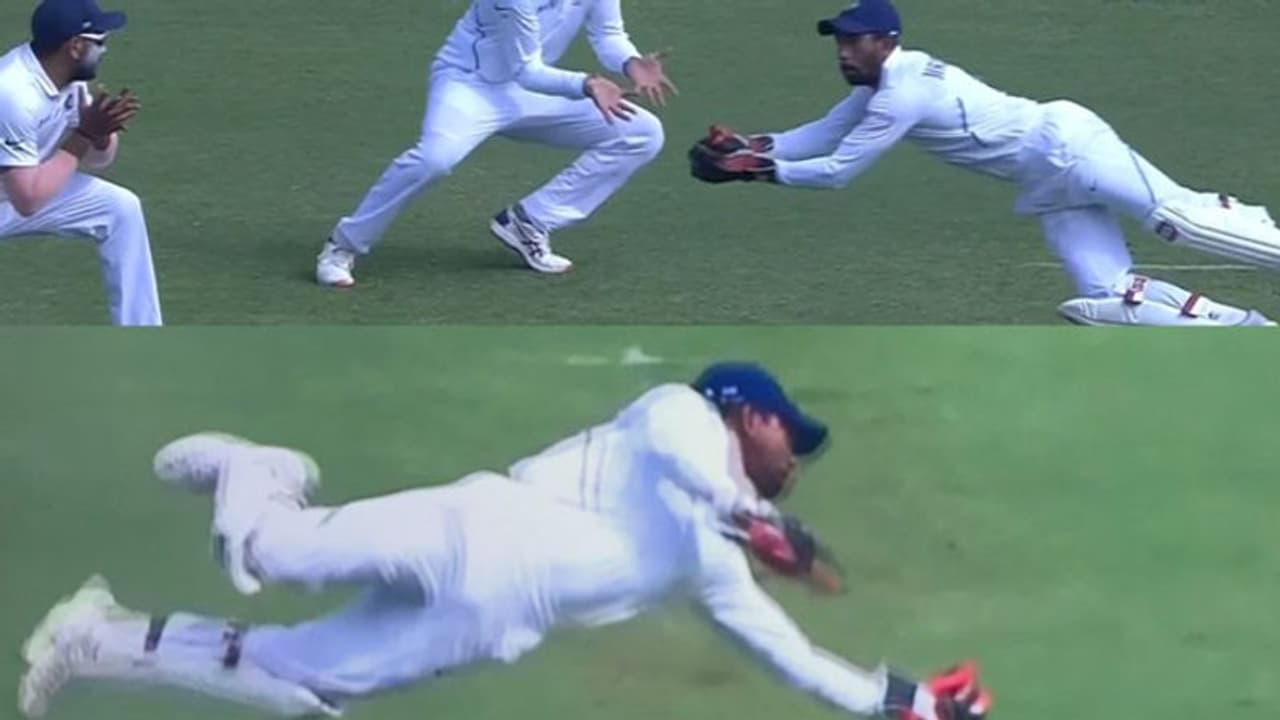 ഉമേഷ് യാദവിന്റെ പന്തിലായിരുന്നു സാഹയുടെ തകര്പ്പന് ക്യാച്ച്. ഡി ബ്രൂയ്നിന്റെ ശരീരത്തിലേക്ക് വന്ന് പന്ത് ഗ്ലാന്സ് ചെയ്യാനുള്ള ശ്രമമാണ് സാഹ പറന്നു പിടിച്ചത്. ആദ്യ ഇന്നിങ്സിലും സാഹ ഗംഭീര ക്യാച്ചെടുത്തിരുന്നു. അപ്പോഴും ഇരയായത് ഡി ബ്രൂയ്ന് തന്നെ. ബൗള് ഉമേഷും. ആദ്യ ഇന്നിങ്സിലെ ക്യാച്ച് കാണാം..