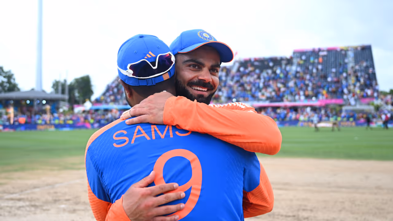 ടി20 ലോകകപ്പിൽ ഇന്ത്യയുടെ മൂന്നാം കിരീട നേട്ടത്തിന് ശേഷം ടൂർണമെൻ്റിലെ താരമായി തിരഞ്ഞെടുക്കപ്പെട്ട സഞ്ജുവിൻ്റെ പ്രകടനത്തെ അഭിനന്ദിച്ചും 'ചേട്ടാ' എന്ന് അഭിസംബോധന ചെയ്തും വിരാട് കോലി.