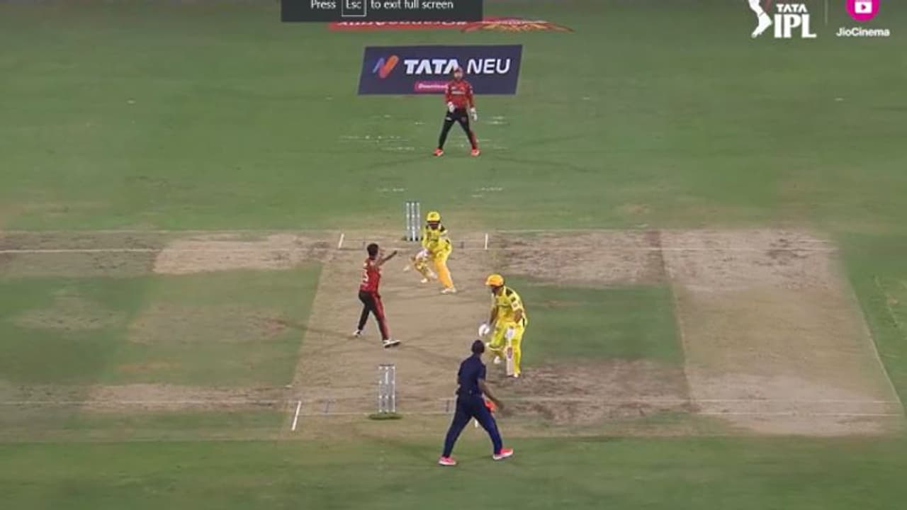 ഭുവനേശ്വര് കുമാറിന്റെ യോര്ക്കര് തടുത്തിട്ട ജഡേജ സിംഗിളിനായി ക്രീസ് വിട്ട് ഓടാന് ശ്രമിച്ചെങ്കിലും പന്ത് കൈയിലെടുത്ത ഭുവി വിക്കറ്റിലേക്ക് എറിഞ്ഞിരുന്നു. എന്നാല് പന്തിന്റെ ദിശയില് തിരിഞ്ഞോടിയ ജഡേജയുടെ മുതുകത്ത് കൊണ്ട പന്ത് വിക്കറ്റില് കൊണ്ടില്ല. ഇതോടെ വിക്കറ്റ് കീപ്പറായിരുന്ന ഹെന്റിച്ച് ക്ലാസന് ഫീല്ഡിംഗ് തടസപ്പെടുത്തല് നിയമപ്രകാരം അപ്പീല് ചെയ്യാന് കമിന്സിനോട് ആവശ്യപ്പെട്ടു. ആദ്യം അപ്പീലിനായി മുതിര്ന്നെങ്കിലും പിന്നീട് കമിന്സ് അമ്പയര്മാരോട് അപ്പീല് പിന്വലിക്കുകയാണെന്ന് വ്യക്തമാക്കി.
