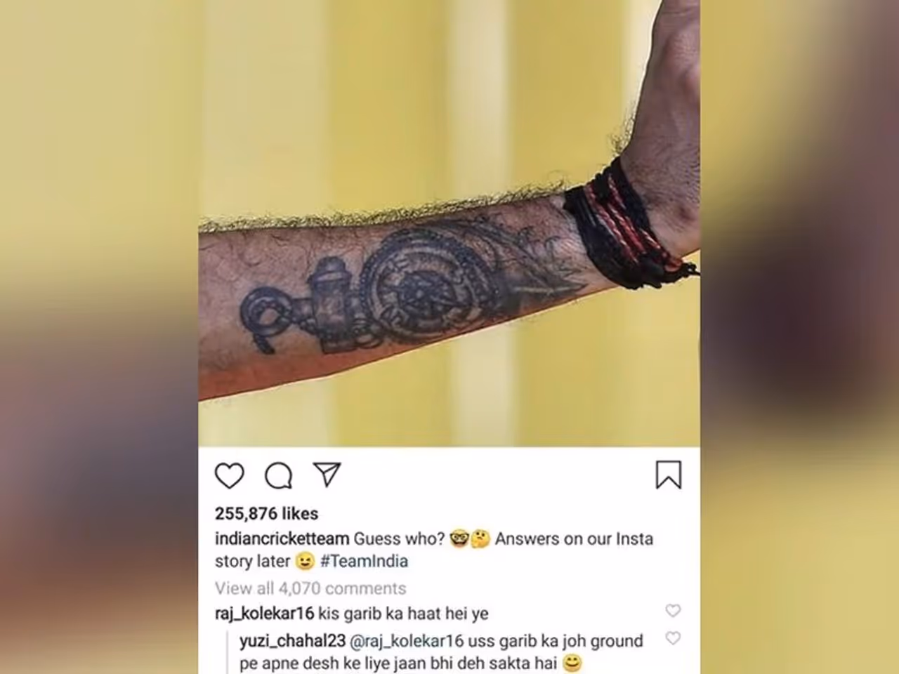 ടാറ്റു പതിച്ച കൈയുടെ ചിത്രം പോസ്റ്റ് ചെയ്ത് ആരുടെ കൈയാണെന്ന് ഊഹിക്കാമോ, ഉത്തരം വൈകാതെ ഇന്സ്റ്റഗ്രാം സ്റ്റോറിയിലൂടെ നല്കുമെന്നും ചാഹല് പോസ്റ്റ് ചെയ്തിരുന്നു. എന്നാല് ഈ ചിത്രത്തിന് താഴെ ഒരു ആരാധകന് ഏത് ദാരിദ്ര്യം പിടിച്ചവന്റെ കൈയാണിതെന്ന് കമന്റ് ഇട്ടു. ഗ്രൗണ്ടില് രാജ്യത്തിനായി ജീവന്പോലും കളയാന് തയാറുള്ള ദരിദ്രന്റെ കൈയാണിതെന്നായിരുന്നു ഇതിന് ചാഹല് നല്കി മറുപടി.