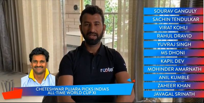 സൗരവ് ഗാംഗുലിയും സച്ചിന് ടെന്ഡുല്ക്കറുമാണ് പൂജാരയുടെ ടീമിലെ ഓപ്പണര്മാര്. ഇന്ത്യന് ക്യാപ്റ്റന് വിരാട് കോലി വണ് ഡൗണായി എത്തുന്ന ടീമില് രാഹുല് ദ്രാവിഡാണ് നാലാം നമ്പറില് കളിക്കും