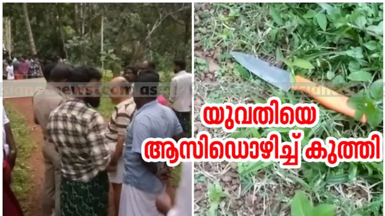 വൈകിട്ടോടെയായിരുന്നു സംഭവം. കാരശ്ശേരി ആനയാത്ത് ക്ഷേത്രത്തിനടുത്ത് വച്ച് യുവതിയെ അക്രമി പിന്തുടർന്നെത്തി ദേഹത്തേയ്ക്ക് ആസിഡൊഴിക്കുകയായിരുന്നു. അലറിക്കരഞ്ഞ യുവതിയെ അക്രമി കൈയിൽ കരുതിയിരുന്ന കത്തി കൊണ്ട് കുത്തി. കുത്തേറ്റ യുവതി താഴെ വീണു.