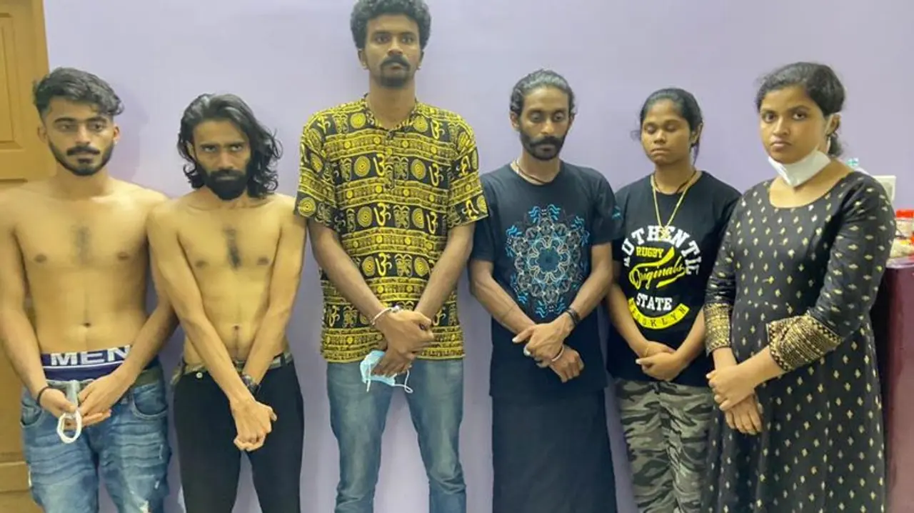 കോഴിക്കോട് സ്വദേശികളായ ശ്രീമോൻ, മുഹമ്മദ് ഫാബാസ്, ഷംന, കാസർകോട് സ്വദേശികളായ അജു എന്ന അജ്മൽ, മുഹമ്മദ് ഫൈസൽ, എറണാകുളം സ്വദേശികളായ മുഹമ്മദ് അഫ്സൽ, തൈബ എന്നിവരാണ് പിടിയിലായത്. കാക്കനാട് ഉള്ള ഫ്ലാറ്റിൽ നിന്ന് പ്രതികളെ പിടികൂടുമ്പോൾ ഇവരുടെ കയ്യിൽ 90 ഗ്രാം എംഡിഎംഎ ഉണ്ടായിരുന്നു. ഒരു ഐ-20 കാർ വഴിയാണ് ഇവർ ലഹരി കടത്തിയിരുന്നത്. മൂന്ന് വിദേശ ഇനം നായ്ക്കളെയും ഇവിടെ നിന്ന് പിടിച്ചെടുത്തിട്ടുണ്ട്.