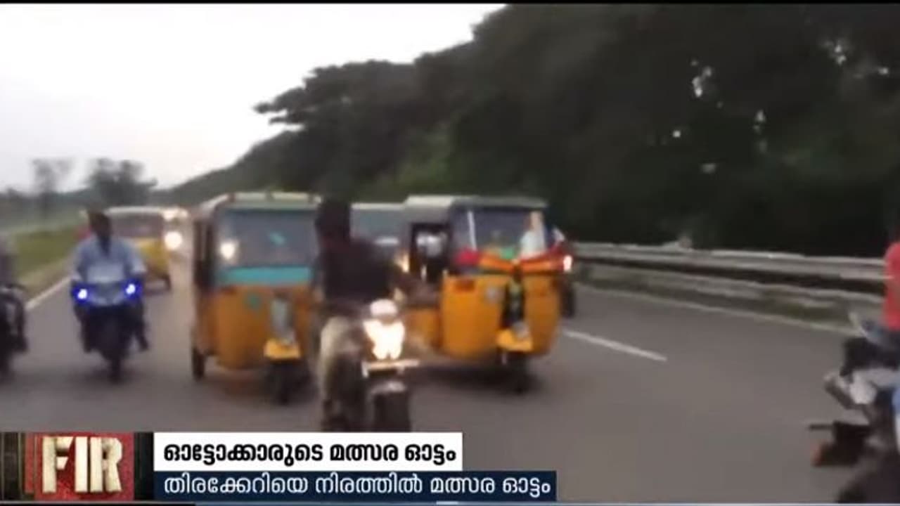 ചെന്നൈയിലെ ഓട്ടോറെയ്സ് എന്ന ഓണ്ലൈന് കൂട്ടായ്മയാണ് മത്സര ഓട്ടം സംഘടിപ്പിച്ചത്. പതിനായിരം രൂപയും ട്രോഫിയുമായിരുന്നു സമ്മാനം. പൊലീസ് അനുമതി വാങ്ങാതെയായിരുന്നു മത്സരം. സംഘാടകരായ ചെന്നൈ സ്വദേശി ഷാമില്, സെലിന്, ശിവപ്രസാദ് എന്നിവരെ പൊലീസ് കസ്റ്റഡിയിലെടുത്തു. മത്സരത്തില് പങ്കെടുത്തവര്ക്ക് എതിരെ കേസ് എടുത്തു. ശക്തമായ നടപടിയുണ്ടാകുമെന്ന് ചെന്നൈ സിറ്റി പൊലീസ് കമ്മീഷ്ണര് അറിയിച്ചു.
