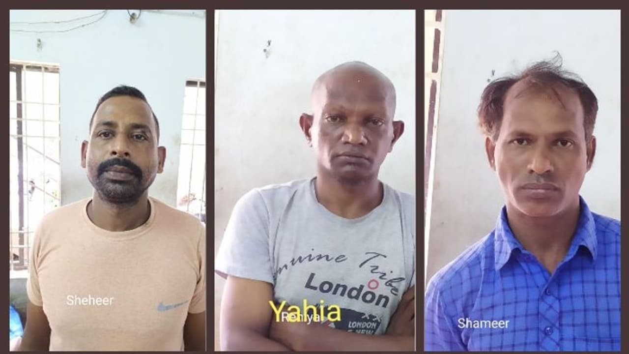 മട്ടാഞ്ചേരി പനയപ്പിള്ളി പണ്ടാര പറമ്പ് കോളനിയിൽ യഹിയ(43), മട്ടാഞ്ചേരി കപ്പലണ്ടിമുക്ക് കല്ലറക്കപറമ്പിൽ ഷഹീർ മുഹമ്മദ്(42), മട്ടാഞ്ചേരി കപ്പലണ്ടിമുക്ക് ഹൗസ് നമ്പർ VII/78 ൽ ഷമീർ എന്നിവരെയാണ് അറസ്റ്റ് ചെയ്തത്.