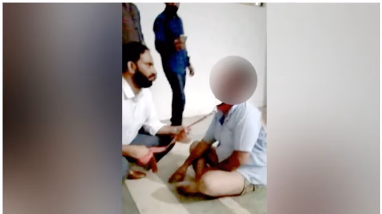 എട്ട് മാസം പഴക്കമുള്ള സംഭവത്തിന്റെ വീഡിയോയാണ് ഇപ്പോൾ പുറത്തുവന്നിരിക്കുന്നത്. ഇക്രാമുദ്ദീൻ എന്ന യുവാവിനെ ഭാര്യയുടെ ബന്ധുക്കൾ പിടിച്ച് തുടലിൽ കെട്ടി, മർദ്ദിച്ച് കുരയ്ക്കാൻ നിർബന്ധിക്കുകയായിരുന്നു.