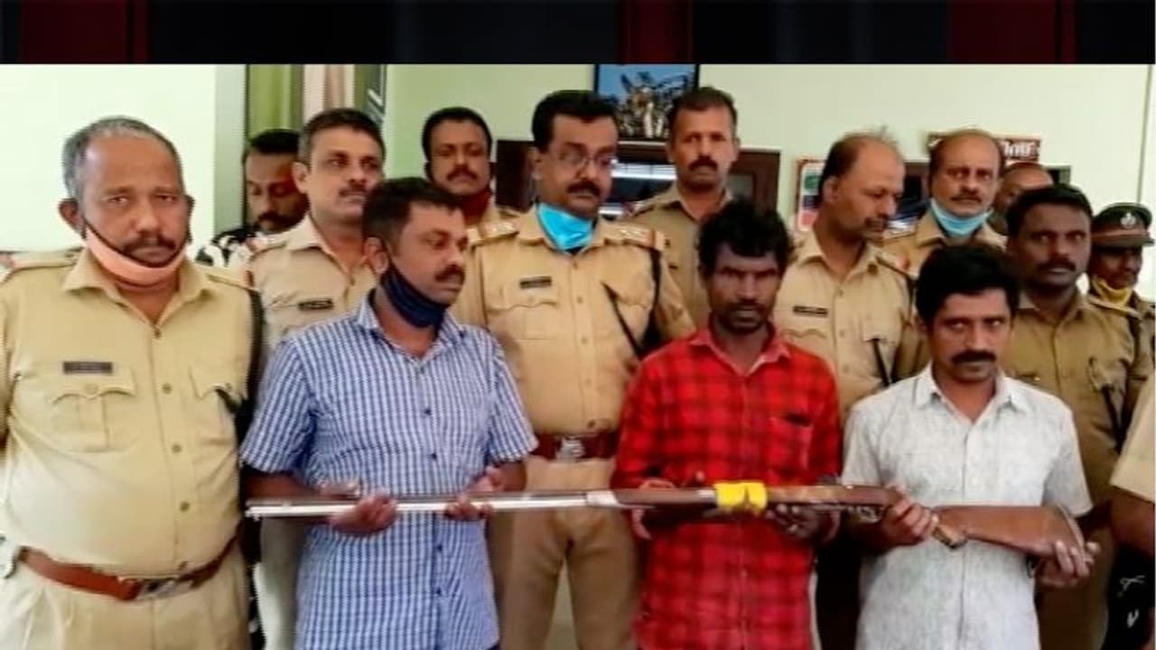 ലേസര് ഘടിപ്പിച്ച തോക്ക്,അമ്പും വില്ലും,കൊച്ചു പിച്ചാത്തി മുതല് വടിവാള് വരെ മൂര്ച്ചയേറിയ പലയിനം ഉപകരണങ്ങള്, വെടിയുണ്ടയും, വെടിമരുന്നും. ഒപ്പം വേട്ടയാടിപ്പിടിച്ച രണ്ട്മ്ലാവുകളുടെ തലയും.ഇത്രയും സാധനങ്ങളുമായാണ് അലിമുക്ക് കറവൂര് പാതയില് നിന്ന് നാലംഗ സംഘത്തെ വനം വകുപ്പ് അറസ്റ്റ്ചെയ്തത്. കറവൂര് സ്വദേശി അനില് ശര്മ,സന്ന്യാസിക്കോണ് സ്വദേശി ഷാജി,ഏറെ സ്വദേശിയകളായ ജയകുമാര്,പ്രദീപ് എന്നിവര് വലിയ വേട്ട സംഘത്തിലെ ചെറു കണ്ണികള് മാത്രമെന്നാണ് വനം വകുപ്പ്കണ്ടെത്തല്.