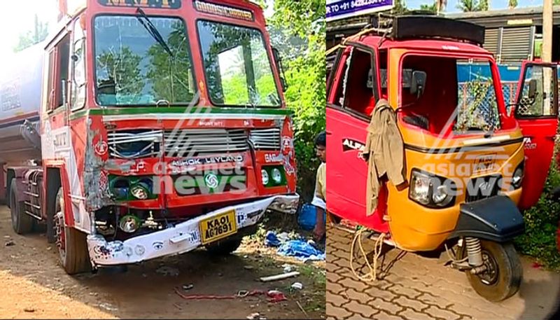 കോഴിക്കോട് നിന്ന് വന്ന ഗ്യാസ് ടാങ്കർ ലോറി എതിരെ വന്ന ഗുഡ്സ് ഓട്ടോയുമായി കൂട്ടി ഇടിക്കുകയായിരുന്നു. ഇതേ ദിശയിൽ വന്ന കാറിനെ മറികടക്കുന്നതിനിടെയാണ് അപകടം.