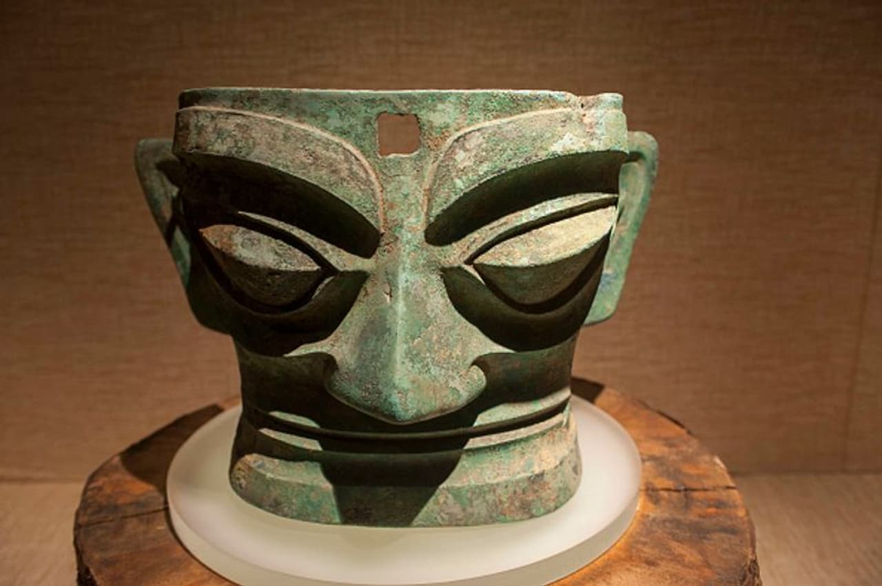 ചൈനയിലെ സിചുവാന് പ്രവിശ്യയിൽ ഒരിടത്തു നടന്ന ആര്ക്കിയോളജിക്കല് ഖനനത്തിലാണ് മാസ്കിന്റെ അവശിഷ്ടങ്ങള് കണ്ടെത്തിയത്. മൂവായിരം വര്ഷം പഴക്കമുള്ള വലിയൊരു പുരാവസ്തുശേഖരത്തിൽ ഉള്പ്പെട്ടതാണ് ഈ സ്വര്ണ മാസ്കും. ഏകദേശം 280 ഗ്രാം (0.6 പൗണ്ട്) തൂക്കവും 84 ശതമാനം സ്വർണവും കൊണ്ടാണ് ഇത് നിർമ്മിച്ചതെന്ന് കണക്കാക്കപ്പെടുന്നു. പുതുതായി കണ്ടെത്തിയ ആറ് ബലിക്കുഴികളിൽ ഉണ്ടായിരുന്ന 500 -ലധികം ഇനങ്ങളിൽ ഒന്നാണ് ഈ ആചാരപരമായ മാസ്ക് എന്ന് രാജ്യത്തെ നാഷണല് കള്ച്ചറല് ഹെറിറ്റേജ് അഡ്മിനിസ്ട്രേഷന് പറയുന്നു.