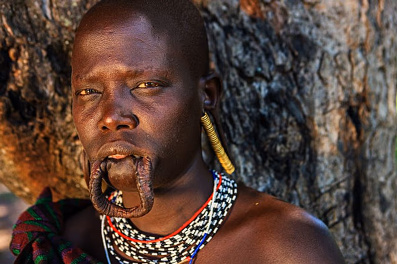 പുരാതന പരമ്പരാഗത വസ്ത്രങ്ങളും ആചാരങ്ങളും ഇപ്പോഴും പിന്തുടരുന്ന ആഫ്രിക്കയിലെ അവസാനത്തെ ഗോത്രങ്ങളിൽ ഒന്നാണ് മുർസി ഗോത്രം. ഈ ഗോത്ര സമൂഹത്തിൻറെ ഏറ്റവും പ്രധാനപ്പെട്ടതും ഇന്നും തലമുറകൾ തുടർന്നു പോരുന്നതുമായ ഒരു ആചാരം ഇവിടുത്തെ സ്ത്രീകൾ ചുണ്ടുകൾ മുറിച്ചതിനുശേഷം ധരിക്കുന്ന വൃത്താകൃതിയിലുള്ള തടി കഷണങ്ങളാണ്. പെൺകുട്ടികൾക്ക് 15 അല്ലെങ്കിൽ 16 വയസ്സ് പ്രായമാകുമ്പോഴാണ് ഇവർ ഈ ആചാരം നടത്തുന്നത്. ഈ സമയത്ത് പെൺകുട്ടികളുടെ കീഴ്ചുണ്ട് വൃത്താകൃതിയിൽ മുറിച്ച് അവിടെ ഒരു ചെറിയ പ്ലേറ്റിനു സമാനമായ മരത്തിൻറെ കഷണം വയ്ക്കുന്നു.