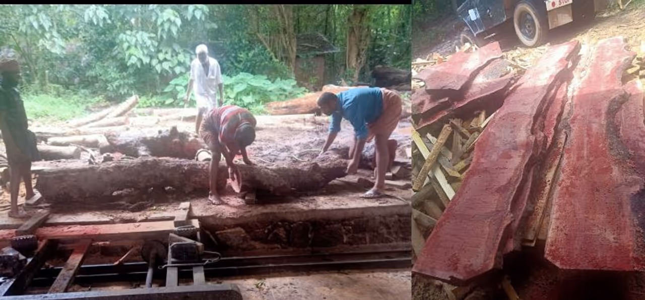 നെല്ലിമരത്തിന്റെ തടി മുറിച്ച് പലകയാക്കി മാറ്റുന്നു