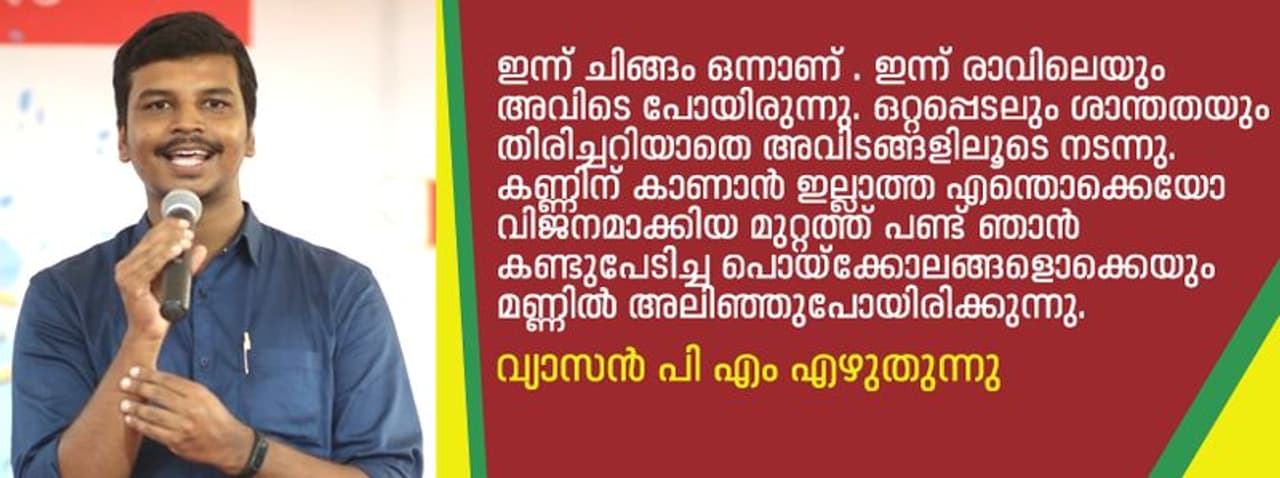രുചിയും മണവും സ്നേഹവും ഭൂമിയില് ബാക്കിവച്ചുകൊണ്ട് ചിലരങ്ങനെ കടന്നുപോകും. ഒരു മഴക്കാലത്ത് അവര് നമ്മളെ ഒറ്റക്കാക്കും. ഒരിടംകൂടി എനിക്ക് അനാഥമായിരിക്കുന്നു .വ്യാസന് പി എം എഴുതുന്നു